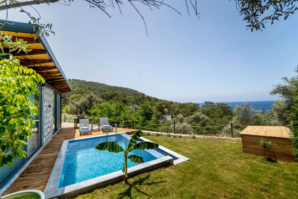 Bu unikal və romantik tətili sevəcəksiniz. Təbiət qoynunda, dənizə çox yaxın, tam dəniz mənzərəsi, hovuz və cakuzisi olan, bütün mətbəx alətləri və avadanlıqları ilə təchiz edilmiş əla bir yerdir. Sidr ağacından hazırlanmış villamız sizə unikal tətil təklif etmək üçün hazırlanıb.