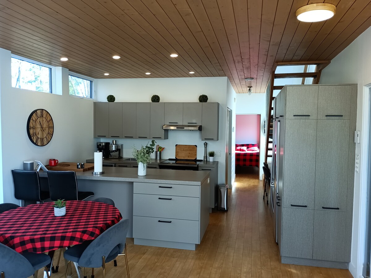 Ailə və ya dostlarla dincəlmək və əylənmək üçün ideal olan bu parlaq, rahat və mükəmməl təchiz olunmuş dağ evinə xoş gəlmisiniz. Ağaclarla əhatə olunmuş, sakit və səmimi mühitdə il boyu açıq olan 13 futlu spa-üzgüçülük hovuzu, tam oyun otağı, qapalı və açıq havada buxarıları tapa bilərsiniz. 🏡 Gənc ailələr üçün uyğun birmərtəbəli ev 🔑 Sadə və uyğunlaşan təcrübə üçün öz-özünə giriş 📍Vale Bras-du-Nord-a yaxın və Kvebek Şəhərindən 45 dəqiqəlik məsafədə