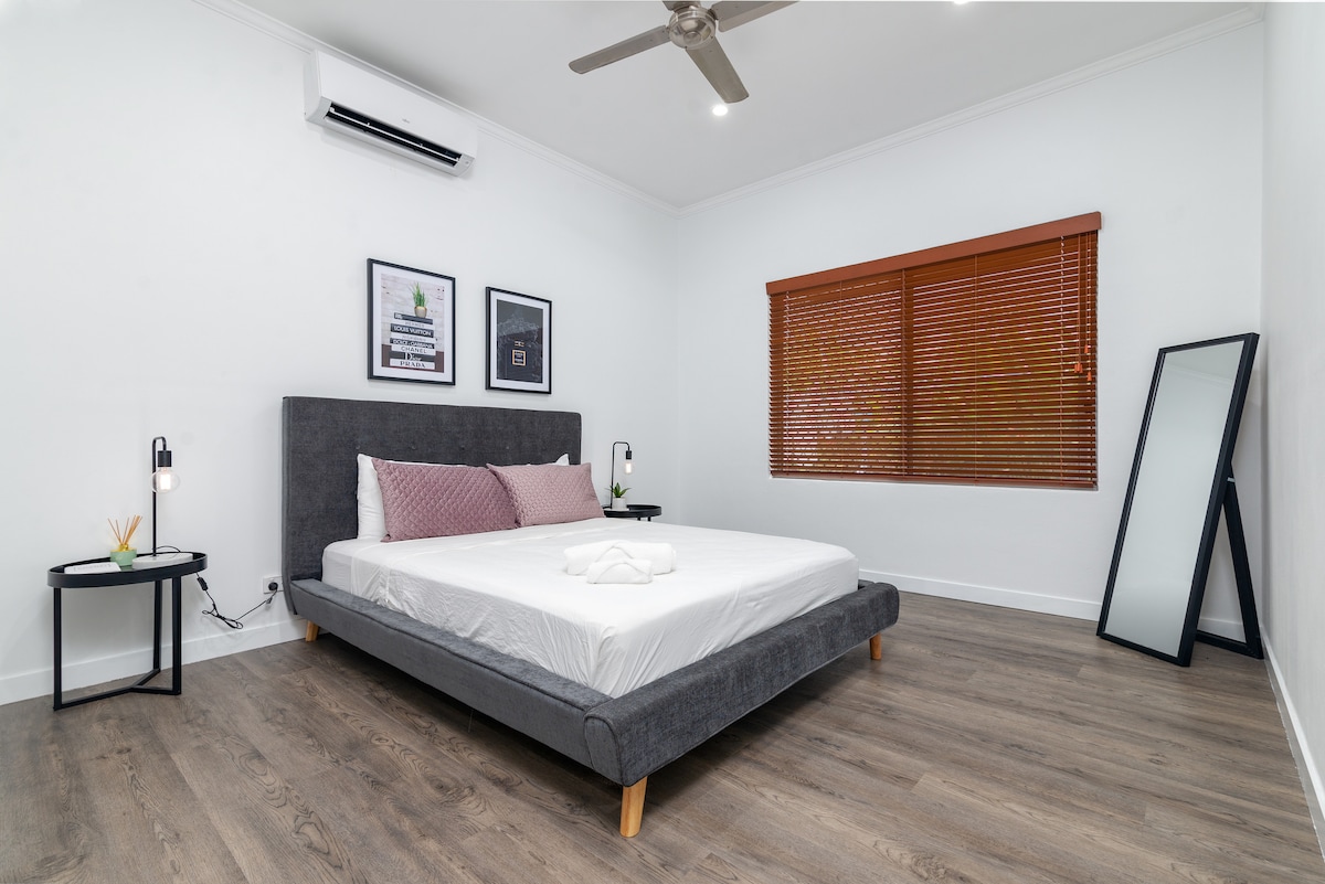 Indah is a spacious Balinese-inspired villa designed for multi-generational families or friends. Four bedrooms all have private ensuites, a 9m saltwater pool, and seamless indoor–outdoor living. Everyone has space to gather and space to retreat. Peaceful, private, and just minutes from Four Mile Beach and Macrossan Street, Indah offers relaxed tropical escapes with room to spread out and enjoy.