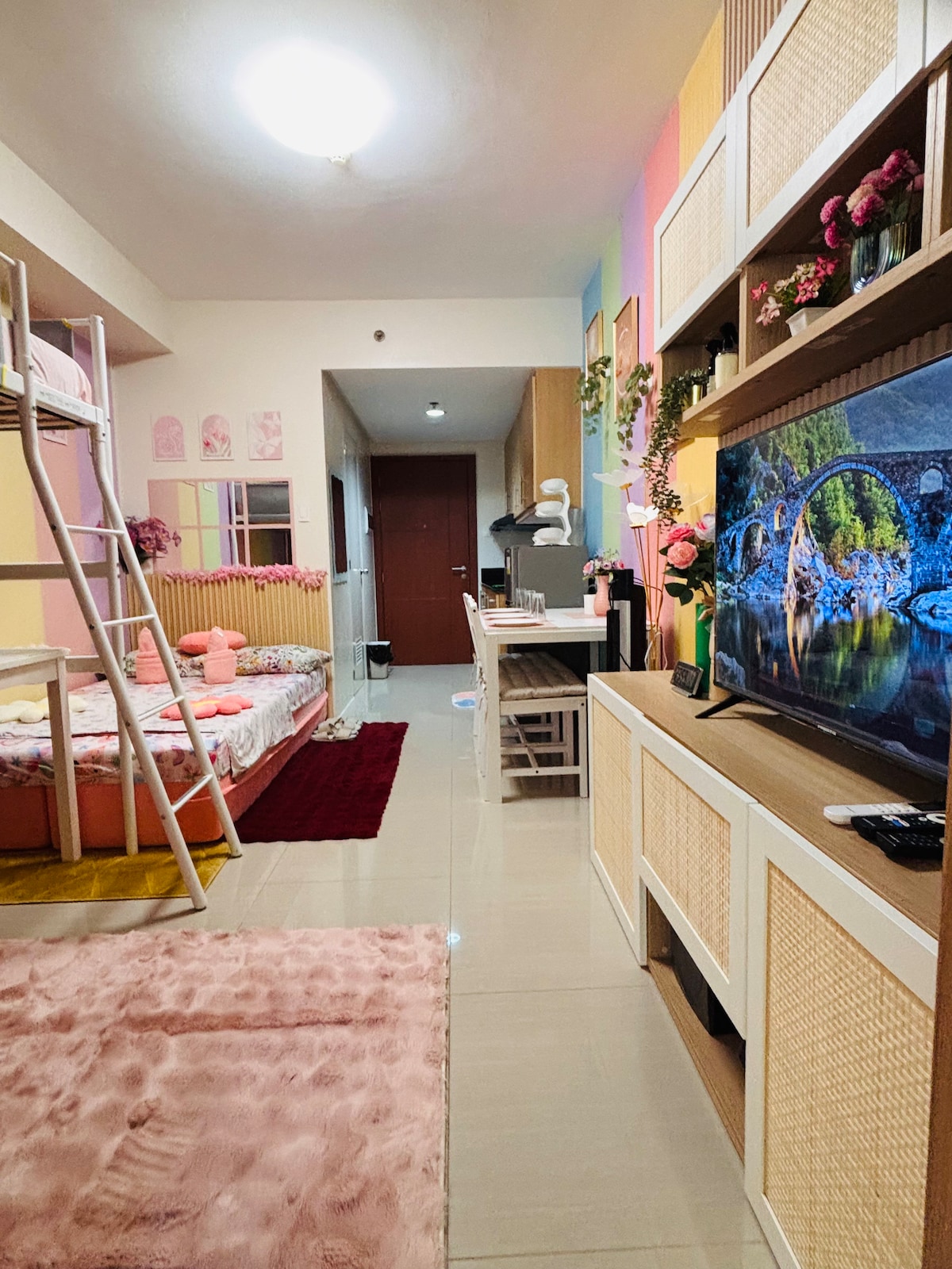 Located in the center of Makati red-light district, this one bedroom apartment is renovated & fitted out to suit an endless summer vacation vibe With Netflix on smart TV, split type AC in the bedroom, comfy queen bed, love seat, full kitchen plus a spacious balcony with the best view of P.Burgos Street below 🚬 Registered guests are allowed to have visitors but room provisions can only accommodate 2 to 5 pax staying overnight. If you prefer utter silence, this might NOT be the place for you‼️