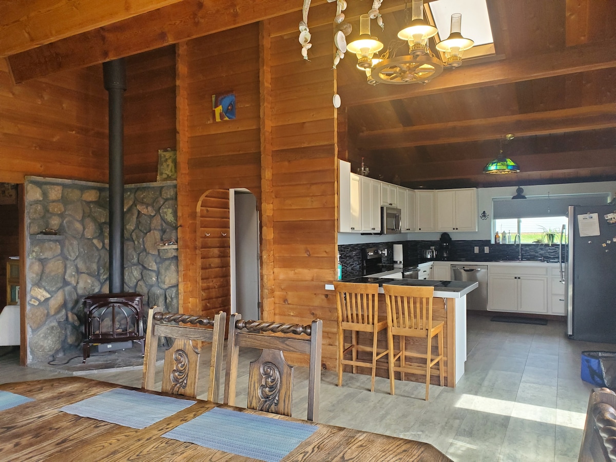 3 and 2, one-story log home located in the heart of Shelter Cove. Breathtaking ocean views from the 600 sq. ft. deck. Vaulted ceilings, open floor plan and large windows make this 1,400 sq ft home incredibly roomy. Easy walk to beaches, golfing, hiking trails, restaurants and a microbrewery. Includes a large kitchen and yard with space for RV parking or tent camping. Enclosed back yard for pets and 2 person uncovered outdoor bath tub with jets. Perfect for family gatherings.