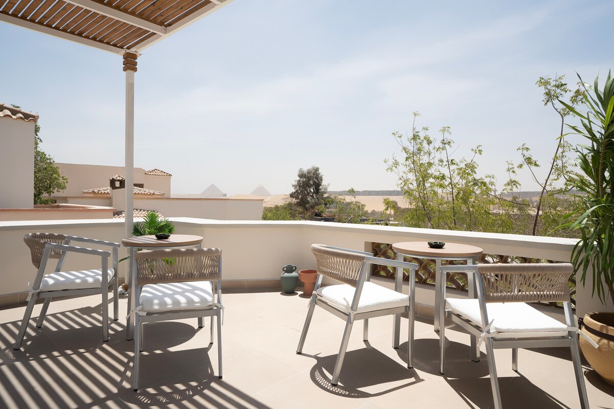 Piramidalara panoramik mənzərə və eyvanı olan Kral suitəsi