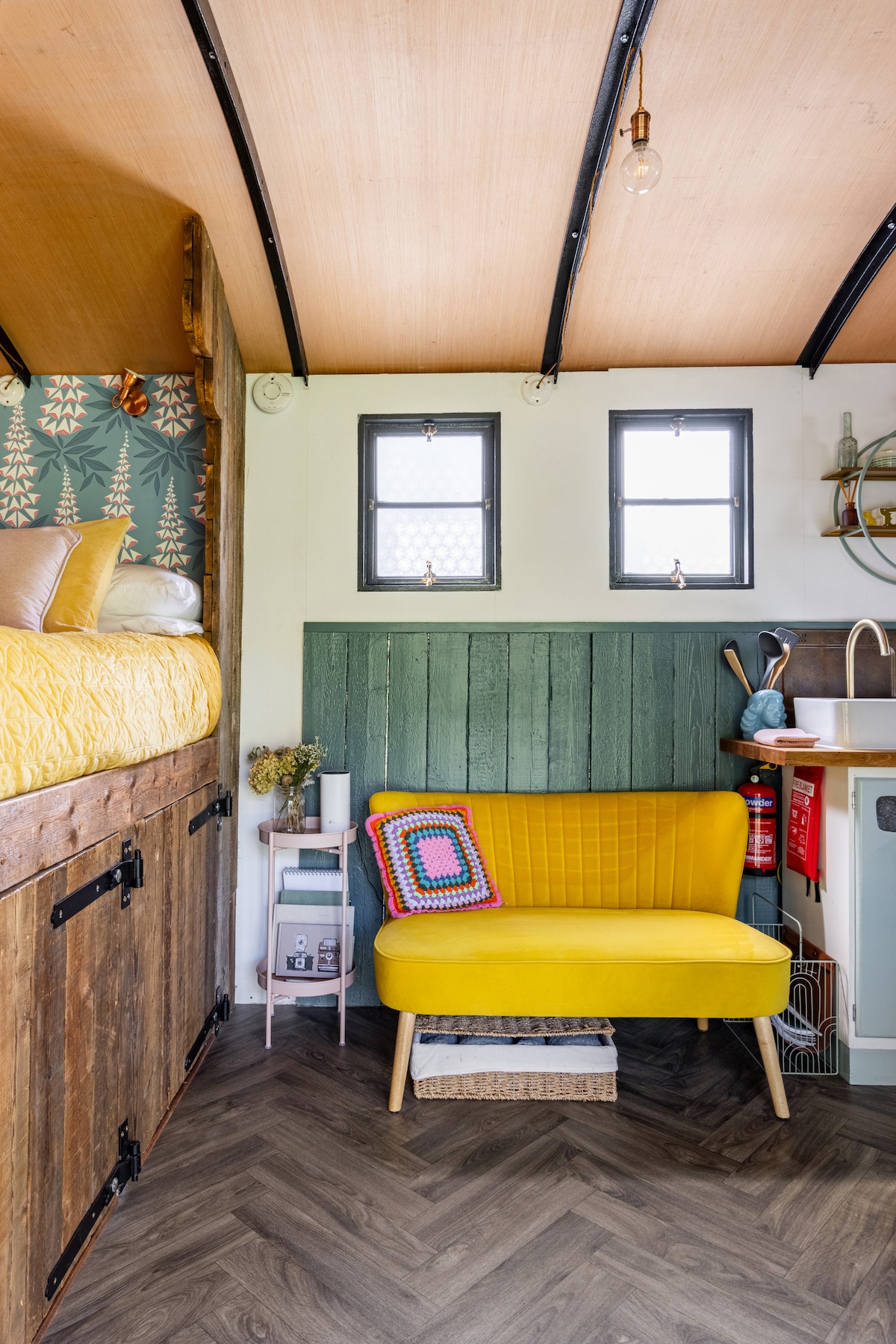 BBC2-nin Unikal B&B-də göründüyü kimi! Dünya İrsi Ərazisində yerləşən Ironbridge dərəsi, sakit bir yaşayış yerində sıxışdırılıb. Həm kənddən, həm də rahatlıqdan daş atmaq. Herberqdəki gizli qapıdan daxil olun, Scout 's Meadow ağacdan hazırlanmış cakuzi, yanğın çuxuru, pizza sobası və veranda ilə öz şəxsi yerlərində yerləşir. Vaqonda rahat çarpayı, yemək bişirmə vasitələri, soyuducu, dondurucu və odun sobası var. Düz qapının yanında tualet, çanaq və isti duşu olan hamam otağı var.
