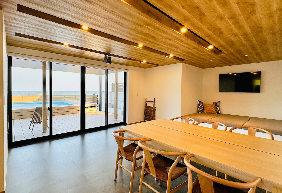 Xoş gəldiniz AL Mare Resort Villası Sauna və bağçaya Vintaj mebel və dəbli məkanları ilə qeyri-adi zövq ala biləcəyiniz kirayə villa. Bitkilərlə əhatə olunmuş böyük bağ örtülü taxta terras və sauna ilə tam təchiz olunub, havadan asılı olmayaraq barbeküdən zövq ala bilərsiniz. Nintendo Switch, tam avtomatik maqonq masası və elektron piano da təmin edirik.Adanı gəzməkdən zövq ala biləcəyiniz 4 velosiped (pulsuz) da var. Sahəsi 70 m ² olan böyük bağ Akabe kimi bir çox bitki ilə əhatə olunub və barbeküdən zövq ala bilərsiniz.Barbekü qril (qaz növü) pulsuzdur.(İstifadə edərkən öz məişət qaz balonunuzu hazırlayın.)Təmizləyin və səliqəyə salın. Elektrik saunasından pulsuz da yararlana bilərsiniz.Saunanı 110 dərəcəyə qədər qurmaq olar, odur ki, çox tərləyə bilərsiniz.Saunanın düz yanında su vannası və duş (soyuq və isti su) var. Su hamamında bədəninizi soyutduqdan sonra sallanan stulda rahat və "rahat" vaxt keçirin.Saunadan istifadə edərkən mayka geyinin. İkinci mərtəbədə böyük vintaj üslublu terras var və qarşınızda okean mənzərəsi ilə pivə ən yaxşısıdır✨