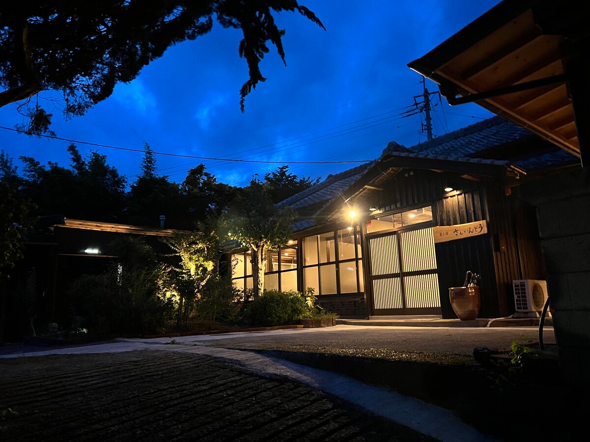Bu, Şimanto dağlarında yerləşən, gündə bir qrup ilə məhdudlaşan özəl mehmanxana. Köhnə fermanı istifadə edərək onu rahat bir məkana çevirdik. Çəkinmədən ailəniz və dostlarınızla birlikdə dincələ bilərsiniz. ・ Hər birində 2 yarı-çarpayı olan 3 otaq var. Əlavə çarpayılarla 7 nəfərə qədər qonaq qala bilər. - Pulsuz paltaryuyan maşın və quruducu (yuyucu vasitə ilə).Ardıcıl gecələr və açıq hava fəaliyyətləri üçün uyğundur. ・ 5 litr pulsuz pivə daxildir!Toast deyərkən barbekü və ya isti yeməkdən zövq ala bilərsiniz. * Öz kömür və inqrediyentlərinizi gətirin. ・ Mehmxana körpüdən qısa məsafədə yerləşir, körpüdən Tosa Kuroshio Dəmiryolu Nakamura və Sukumo Xətlərini görə bilərsiniz. ・ Binalarda yemək otağı var və səhər yeməyi saat 7:00-dan 9:30-a qədər təqdim olunur (cümə axşamı və cümə günləri bağlanır). ・ Şimanto Şəhərində yemək və ya alış-veriş etmək istəyirsinizsə, avtomobillə cəmi 10 dəqiqəyə çata bilərsiniz. Giriş vaxtı saat 15:00 -dan 19:00 -a qədərdir. (Planlaşdırılan vaxtınız dəyişərsə, bizimlə əlaqə saxlayın) Çıxış vaxtı saat 10-a qədərdir Gecələr isə ulduzlarla dolu səma sakitliyi ilə dolur. Təbiətə yaxın olduğu üçün mövsümdən asılı olaraq həşəratlar görünə bilər. Həşəratları sevmirsinizsə, qışda gəlməyi tövsiyə edirik, çünki o zaman sakit vaxt keçirə bilərsiniz. Avtomobillə gəlsəniz, naviqasiya sistemi sizi yanlış yerə yönləndirə bilər.