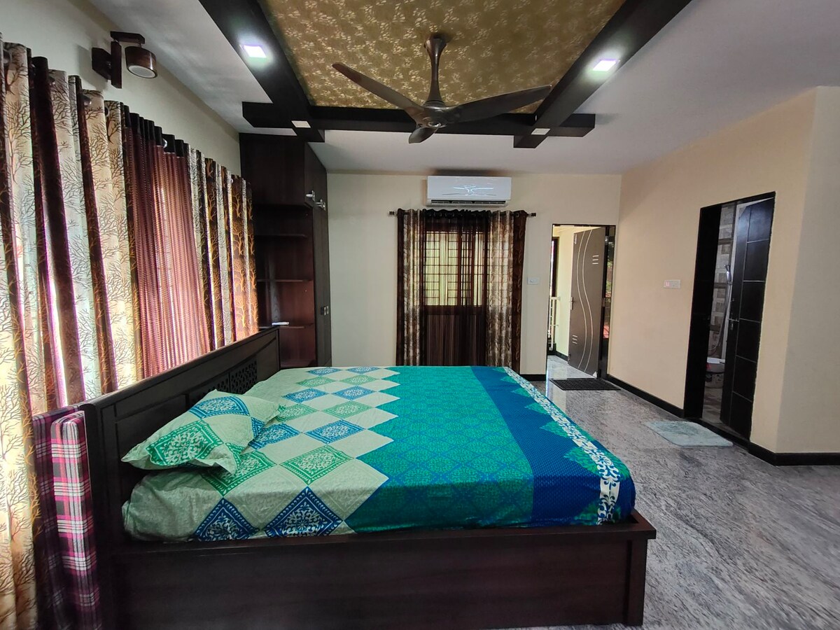 Kundapurda ailələr və kiçik qruplar üçün ideal olan, yaxşı saxlanılan evimizdə rahat və dinc qonaqlamanın dadını çıxarın. Məkanda rahat yaşayış sahəsi, təmiz yataq otağı (otaqları), isti suyu olan hamam(lar) və əsas cihaz və qab-qacaqları olan funksional mətbəx var. Tam məxfiliyi təmin edən qonaqların bütöv mənzilə eksklüziv girişi var. Yaxınlıqda restoranlar və yemək çatdırılma seçimləri ilə rahat yerləşir. Erkən giriş və ya gec çıxış mövcudluğa əsasən təmin edilir və buna zəmanət verilə bilməz.