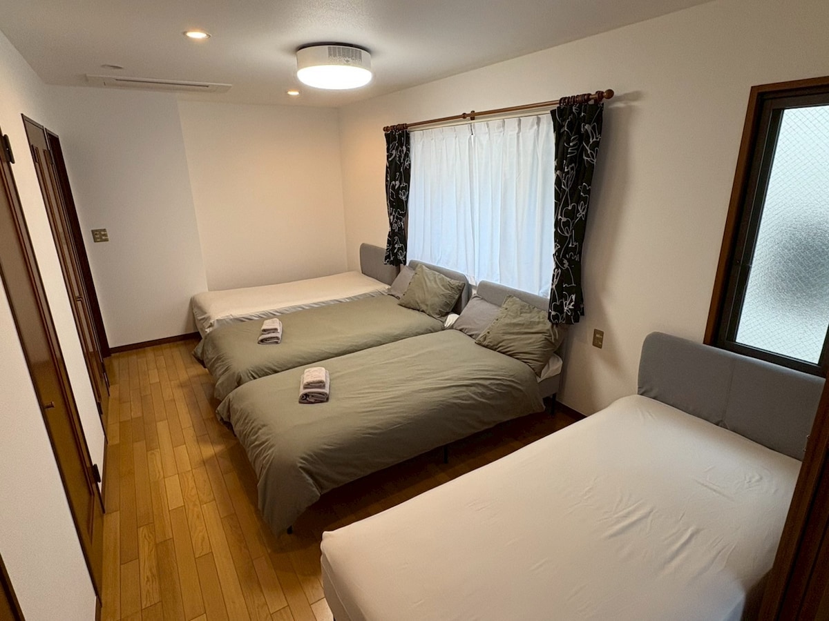We provide the second floor ( 100 ㎡) of a two-family house. The host family lives on the first floor, but the second floor is a completely separated house entering from the outer stairs, so privacy is maintained. The bedroom has 1 room with 6 tatami mats east Japanese-style room (3 sets of futons) + 6 tatami mats South Japanese-style room, 2 single beds, 1 semi-double bed is small room, living room and dining room. I introduced a low-elasticity mattress into a all bed. (Name is True Sleeper)