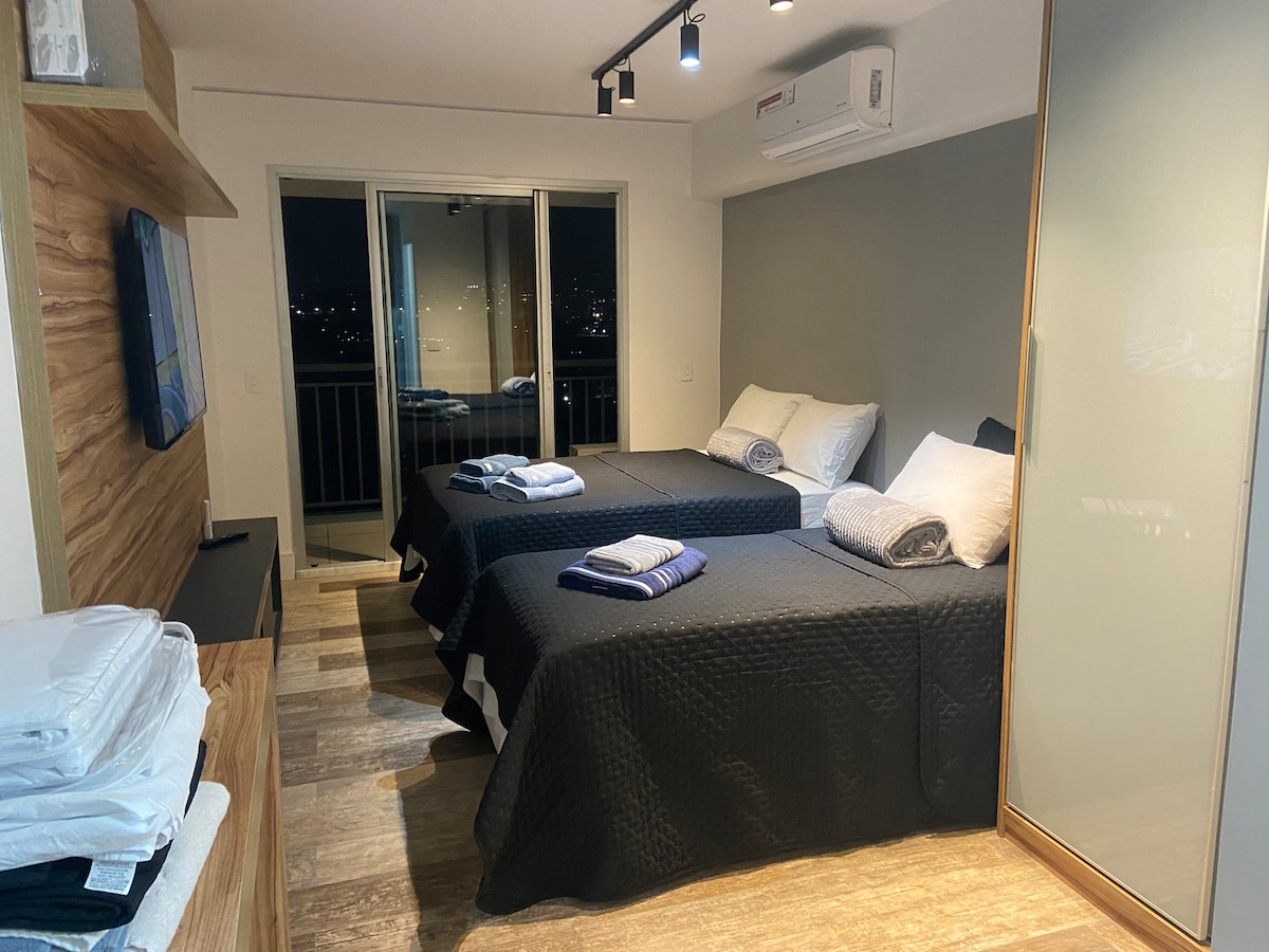 Bu rahat, təhlükəsiz və yaxşı yerləşmiş yerdə praktikaya qucaq açın. Unikal, tam və yeni! Tatuapé məhəlləsində, Carrão metrosunun yanında əla infrastruktur və əsas mövqe. 50" Ağıllı TV, Wi-Fi İnternet, İkinəfərlik çarpayı, Yataq dəsti; Dəsmallar; Yorğan, Qaranquş pərdəsi. Hamam (Şampun və sabun). Tam mətbəx, soyuducu, soba, mikrodalğalı soba, qab-qacaq və ləvazimatlar. Binada idman zalı. PARKİNQ YERİMİZ YOXDUR Kondominiumun yanında ödənişli parkinq.