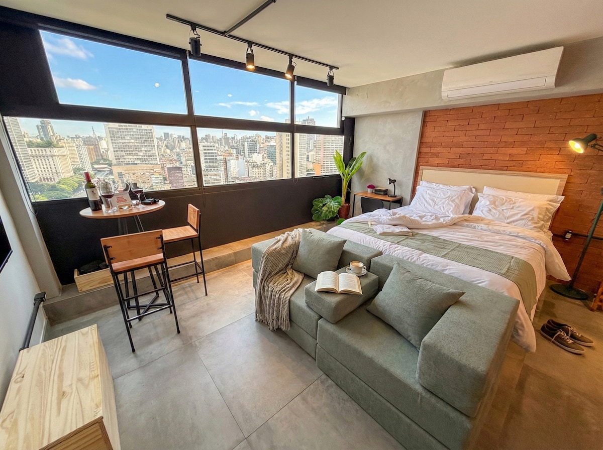 Studiya mərkəzdəki ən yüksək binanın 31-ci mərtəbəsində yerləşir, müasir və qonaqpərvər dizayna, eləcə də şəhərin heyranedici mənzərəsinə malikdir. Pəncərədən Anhangabaú Vadisinə, Tarixi Mərkəzə, Av antenalarına heyran ola bilərsiniz. Paulista: San-Pauluda ən gözəl mənzərələrdən biri. Bura SampaSky-nin yerləşdiyi binadır və mərkəzin əsas görməli yerlərinə getmək mümkündür. Burada kondisioner, tətbiqləri olan 55'' televizor, əsas ləvazimatlarla təchiz edilmiş mətbəx, aşpaz (1 ağız), mikrodalğalı soba və minibar var.