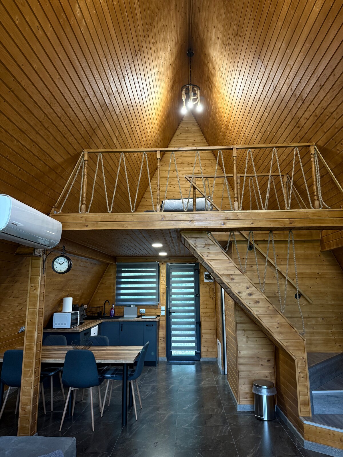 Sizi təbiətə və sakitlik anlarına qaçışlar üçün mükəmməl 3 eyni A-çərçivəni kəşf etməyə dəvət edirik. Hər bir evcik müasir dizayna malikdir, lakin tətillərin rustik cazibəsini təbiətin ortasında saxlayır. Tutum : maksimum 4 nəfər/evcik İkinəfərlik çarpayı + geniş divan Tam təchiz olunmuş mətbəx Vanna otağı Barbekü üçün yer Rahatlıq vermədən məxfilik, sakitlik və təmiz havadan zövq almaq istəyən ailələr, cütlüklər və ya kiçik dost qrupları üçün ideal yer.
