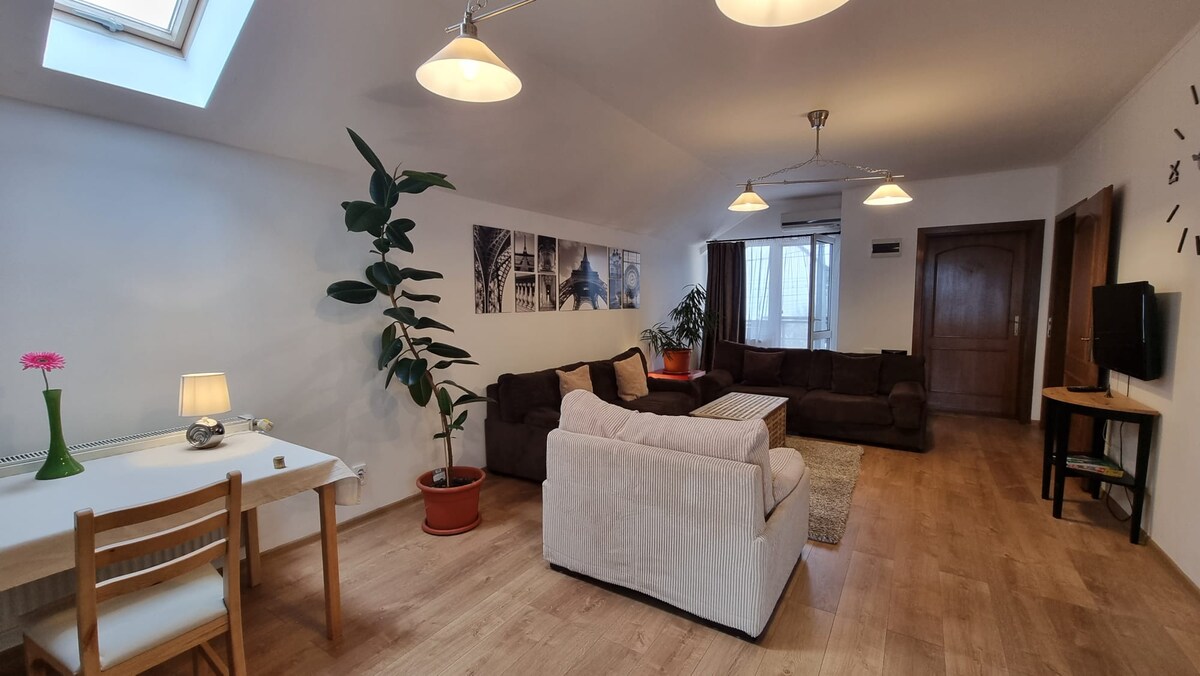 Discover your modern studio retreat in Sibiu! Perfect for a single person or a couple , this ground-floor apartment offers a quiet escape just a 15-20 minute walk from the historic center. Enjoy A/C, high-speed internet, a fully equipped kitchen, and a smart TV. Experience the perfect blend of comfort and convenience in a peaceful residential neighbourhood.