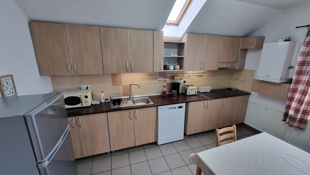 Sibiunun mərkəzində gözəl bir evin birinci mərtəbəsində mərkəzdə yerləşən mənzilimizə xoş gəlmisiniz. Promenada Mall-a (5 dəq), Polisano Hospitalına (7 dəq) və Köhnə Şəhərə (15 dəq) qısa bir gəzinti. 2 yataq otağı, 1 hamam otağı, böyük qonaq otağı, tam təchiz olunmuş mətbəx və balkon. Burada yaddaqalan qonaqlama axtaran cütlüklər, ailələr, tək və ya işgüzar səyahətçilər üçün rahat məkan təmin edilir. Təzə, peşəkar təmizlənmiş döşəkağılar və dəsmallardan zövq alın. Mənzil hər qonaqlamadan sonra sanitarlaşdırılır.