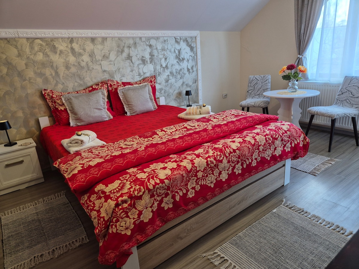 Bütün qrup bu mərkəzdə yerləşən mənzildən ziyarət etməyə dəyər hər şeyə asanlıqla giriş əldə edəcək. Mənzil Sibiu Mərkəzi köhnə mərkəzdən 2 dəqiqəlik məsafədə yerləşir. Mənzil iki geniş əsas yataq otağı , ayrıca vanna otağı , tamamilə lazım olan hər şeylə təchiz edilmiş açıq məkan mətbəxi, pulsuz Wi-Fi və s. ilə təchiz olunub.