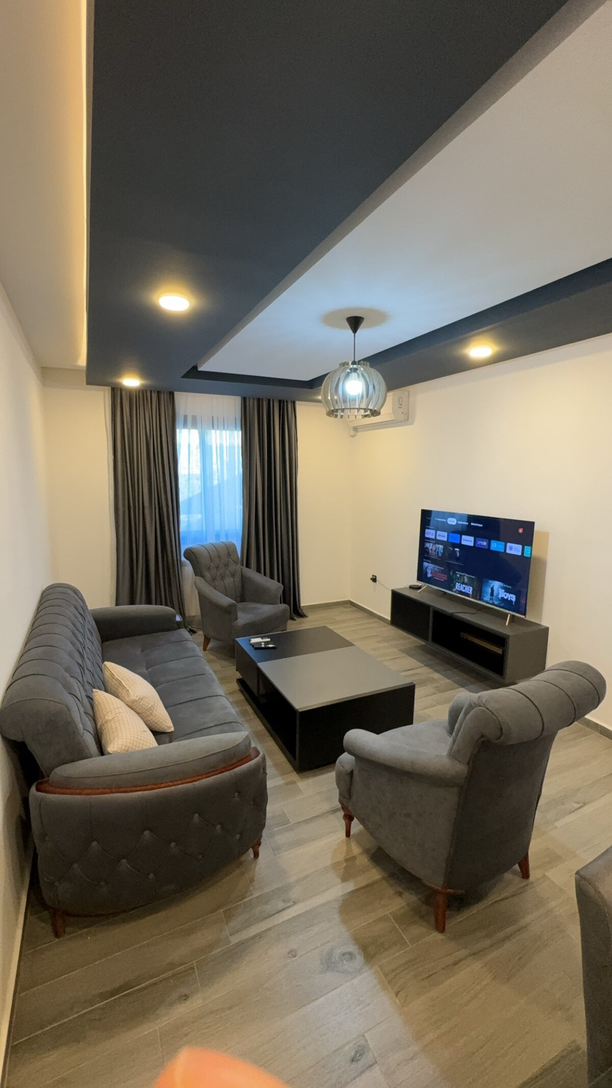 5 nəfərə qədər qonaq qəbul edə bilən dəbli və geniş 140m² 3 otaqlı. ayrıca terras və şəhər mənzərəli mənzil. Hava limanı yolunun üstündə, bütün imkanların və şəhərin 2 əsas ticarət mərkəzinin yaxınlığında yerləşir. Ailələr, qruplar və ya işgüzar səyahətçilər üçün ideal Wi-Fi, tam təchiz olunmuş mətbəx, kondisioner və rahat atmosfer daxildir