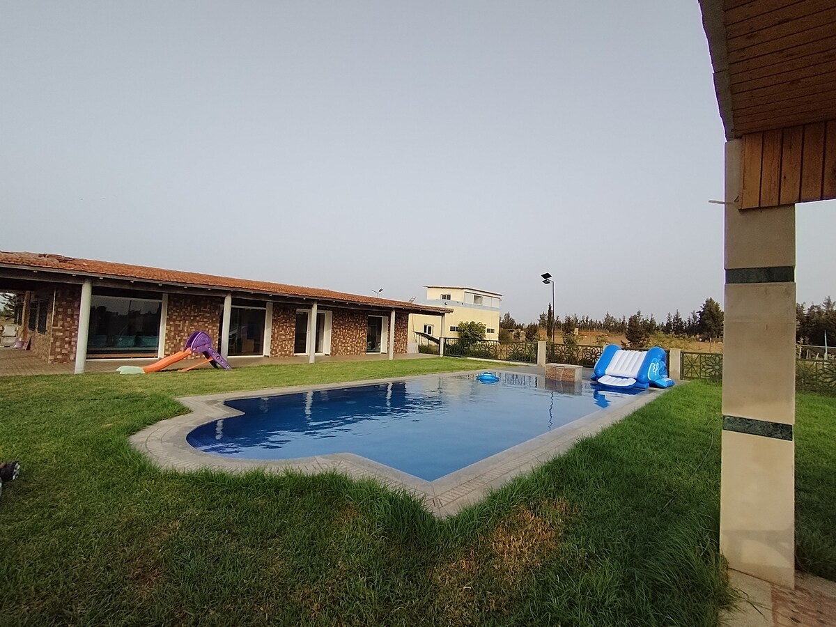 Découvrez une superbe ferme privée de 3 hectares idéale pour vos séjours en famille ou entre amis, avec une grande piscine, 3 chambres, 3 salons, une cuisine spacieuse et un espace barbecue en plein air. Calme, nature et confort garantis pour un moment de détente inoubliable. La ferme se situe à 30 min de Rabat et 10 min de Tiflet Veillez me contacter avant réservation.