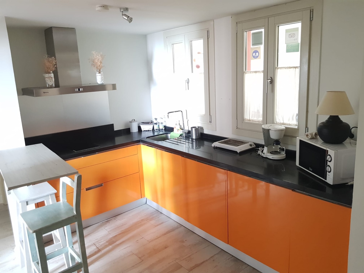 Tarixi Arenal liman rayonunun ortasında parlaq, müasir 55sqm loft, öküzünə 3 dəqiqə və çayın yanında. Yaxşı hiss etmək üçün rahat sənaye dizaynı. Yüksək otaqlar, böyük pəncərələr. Trafik / pab səs-küyü yoxdur. Şəhər ziyarətindən və ya iş günündən sonra dincəlmək üçün idealdır. Əsas attraksionlara, kafelərə, restoranlara, tapaslara, mağazalara, gecə həyatına cəmi 3-10 dəq. məsafədə Tam təchiz olunmuş mətbəx, 2 vanna otağı. 2 ikinəfərlik çarpayı, 1 divan çarpayı. Pilləkənsiz birbaşa giriş. Yeni təmir olunub.