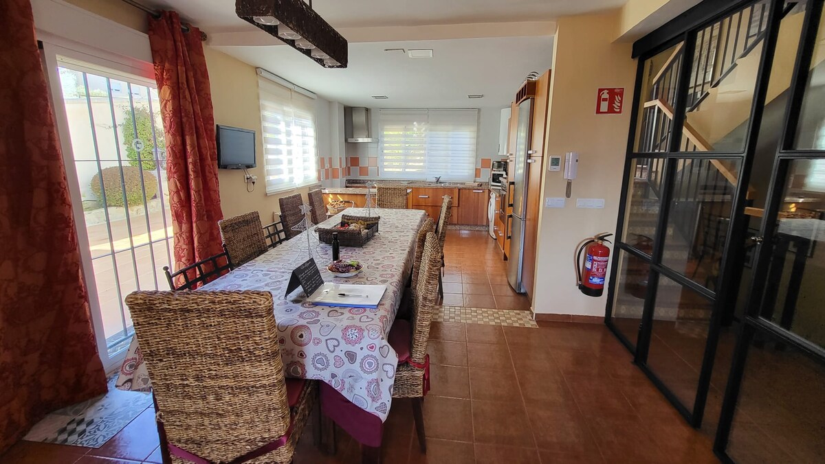 Bu ev ayrıca hovuzu və barbeküsü olan daxili verandası ilə xarakterizə olunur. Eyvanın altında stulları olan masa sizi açıq havadan zövq almağa dəvət edir, 2 qamak isə Əndəlüs günəşini oyatmaq üçün mükəmməldir. İçəridə yataq otağında əlavə çarpayı və ya beşik seçimi olan əlavə böyük çarpayı var. Yerli sənətkarlıq nümunələri ilə bəzədilmiş qonaq otağında divan, Ağıllı TV və buxarı (qiymətə daxil olan odun) var. Qonaq otağı tam təchiz olunmuş mətbəxə açılır.