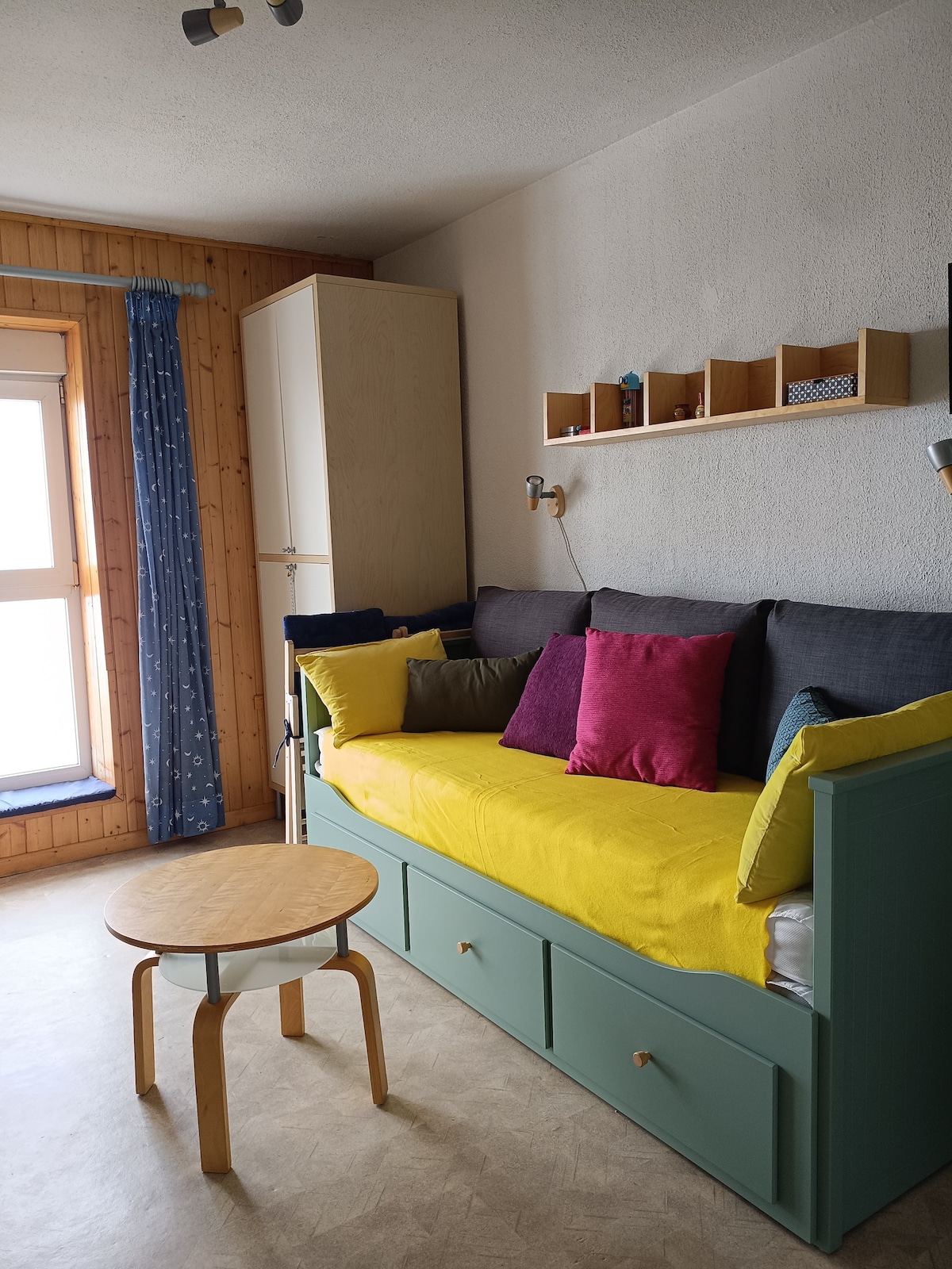 Bu dəbdəbəli, sakit və zərif qonaqlama yerində rahatlayın və dincəlin. İnternet, xizək anbarı və dağlarda möhtəşəm mənzərələrdən və bənzərsiz gün batımlarından zövq ala biləcəyiniz gözəl bir günün sonunda yaxşı dincəlmək üçün lazım olan hər şey var. İlk kreslo liftinin dayanacağı yer təxminən 150 metr məsafədədir. Yaşayış yerimizin yanında supermarketlər, barlar və s. var. Burada səfərinizdə gözlənilməz problemləri həll edə bilərsiniz.