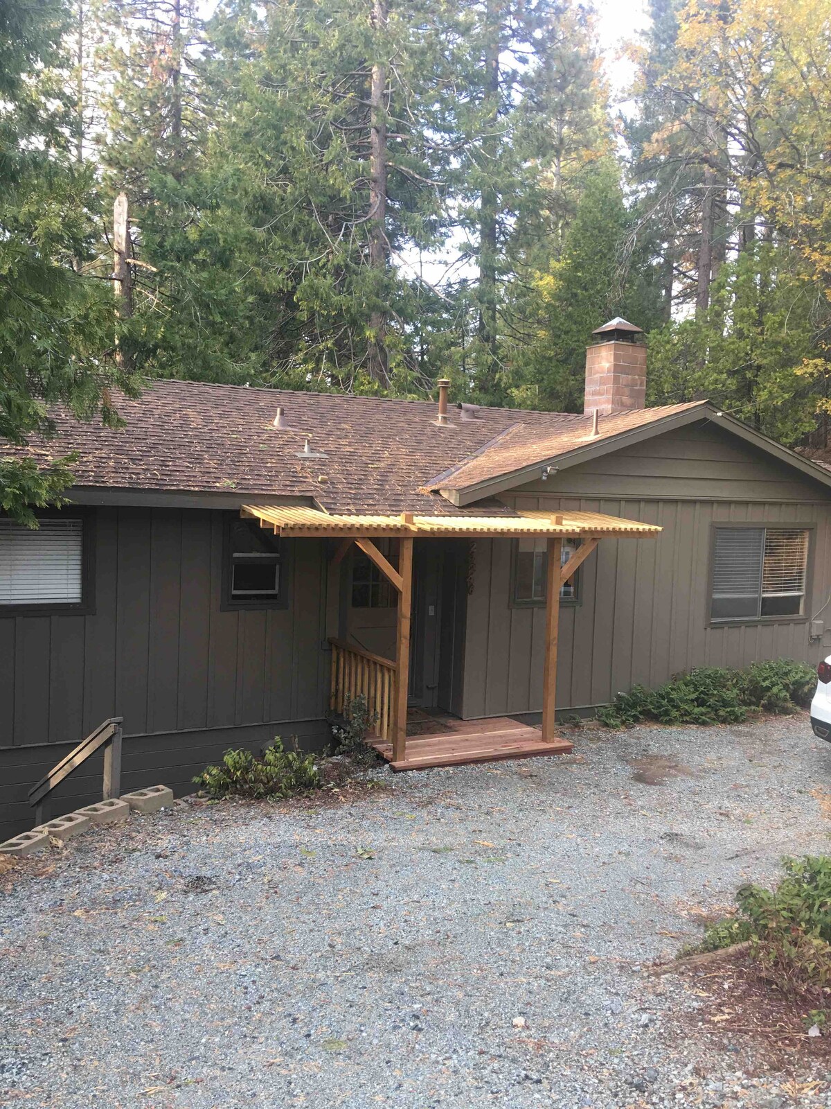 Quiet and Rustic family cabin located at the end of a cul-de-sac in quaint Mi-Wuk Village. Recently remodeled kitchen and bathroom in its original mid century modern vibe. Warm up in front of the wood burning fireplace, sit amongst the trees from our high perched deck. Make this your home base for hiking, fishing and swimming in the Sierras. In the winter, ski at Dodge Ridge or go sledding. Excellent wi-fi and zoom calling capabilities.