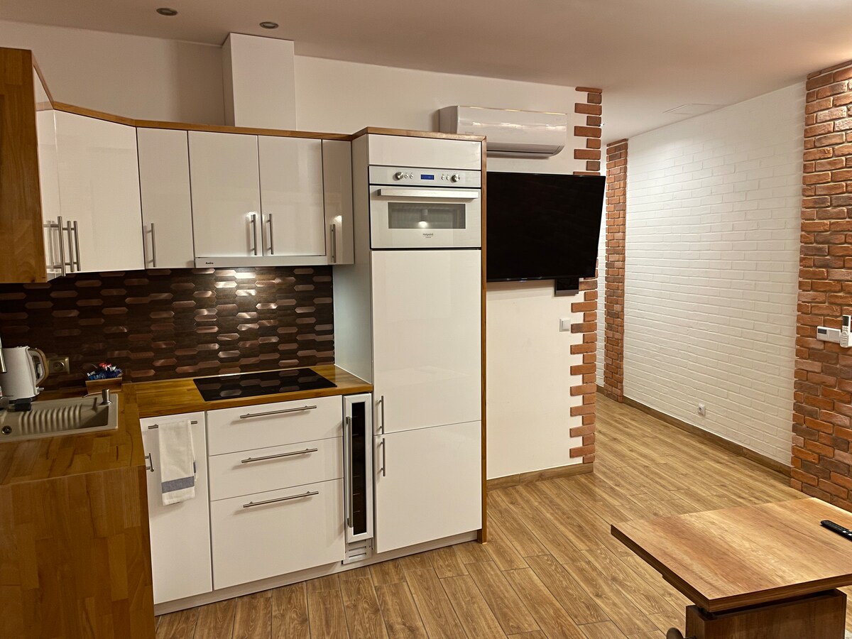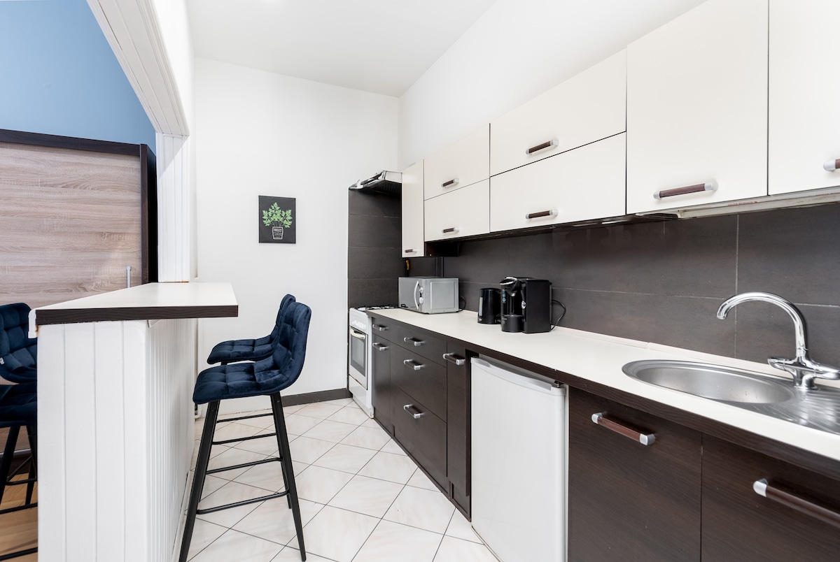 Limanovskiy küçəsinə baxan tarixi kirayə evdə dəbli mənzil. İki böyük pəncərə kifayət qədər təbii işıq təmin edir. Məkan rahatlıq və uzaqdan rahat iş üçün nəzərdə tutulub. Mənzildə 180 sm ölçülü geniş çarpayı, 55 düymlük televizor və qabyuyan maşın və paltaryuyan maşınla tam təchiz olunmuş mətbəx var. Bu, həm qısa, həm də uzunmüddətli şəhər istirahəti zamanı tam rahatlıq təmin edir.