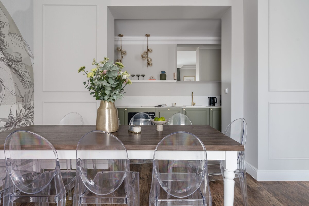 Open the lush floor-to-ceiling drapes or sip some coffee on the balcony and look out onto a cityscape that's barely changed in well over a century. On the left, you'll see the medieval gothic towers of the St. Mary's Basilica from where the famous trumpet call is played. This bright, stately studio features chic furnishings, old tiled stove with original copper elements and stylish pieces of modern art. Situated next to the Market Square, it is the best place to explore the city's rich history.