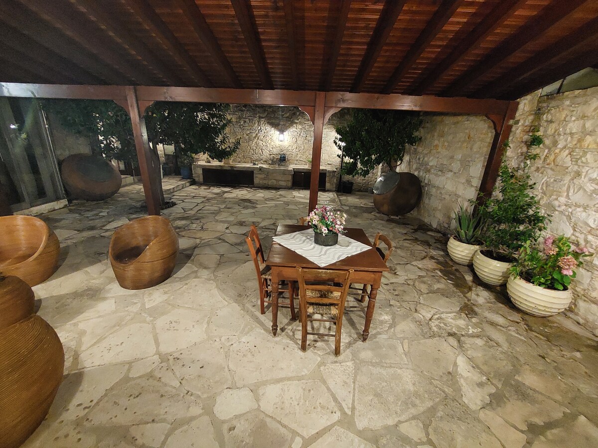 Traditional village house located at the foot of the Troodos Mountains with picturesque hills and amazing views. Feel the unique experience of living in nature in a village style, away from the noise of the city, enjoy hiking in the surrounding area, visit wineries or nearby historic villages, enjoy swimming in summer or have a campfire in winter. You can meet village cats, which children love to play with and they are very friendly