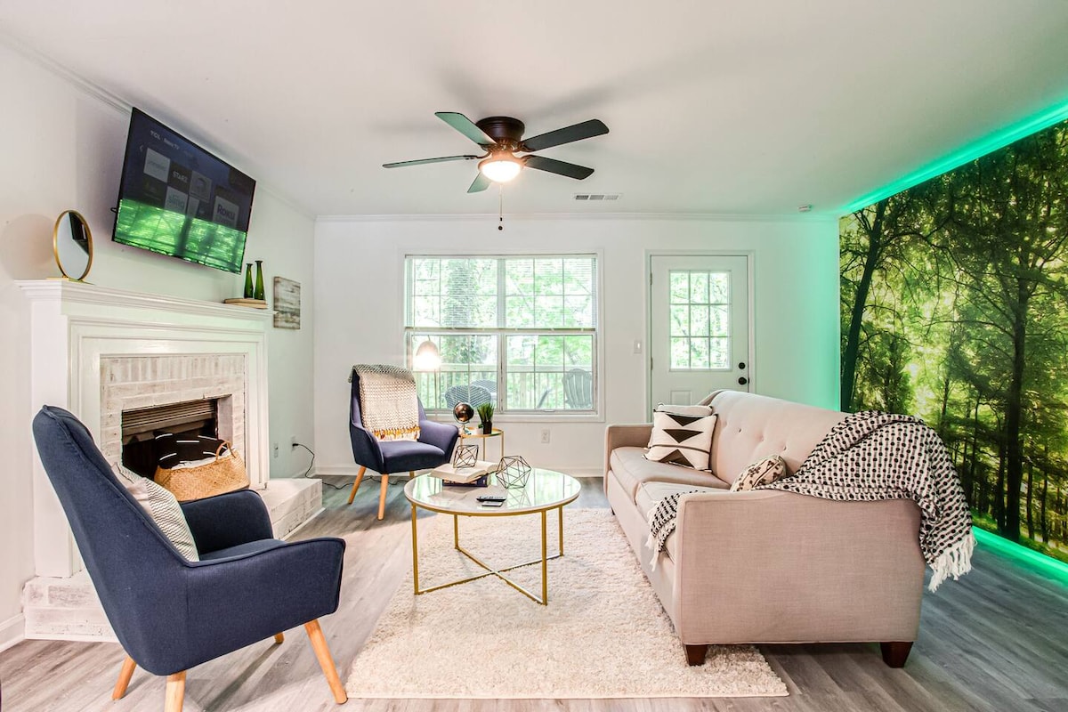 Lake Laurel Lux Retreat-Dogs xoş gəlmisiniz! Siz və xəz körpənizin rahatlığını nəzərə alaraq dizayn etmisiniz. Evin bütün komfortları. 285/75-ə asan giriş. Geniş mərtəbə planı. Rahat Lüks çarpayılar + 150-179 sm çarpayı-divan. 3 Roku TV. Səhər yeməyi guşəsi/qəhvə barı+ada. Tam təchiz olunmuş mətbəx. Braves oyunundan və ya yaxınlıqdakı restoranlardan zövq alın, yaxud da evdə öz yeməklərinizi hazırlayın. W/D, Rahat Gümüş Komet cığırı, Akvarium, Chattahoochee, Mercedes Benz, Batareya, Roxy və Downtown. İtlər üçün uyğundur. Uzunmüddətli qonaqlamalar üçün mükəmməldir. *Ortaq arxa həyət.