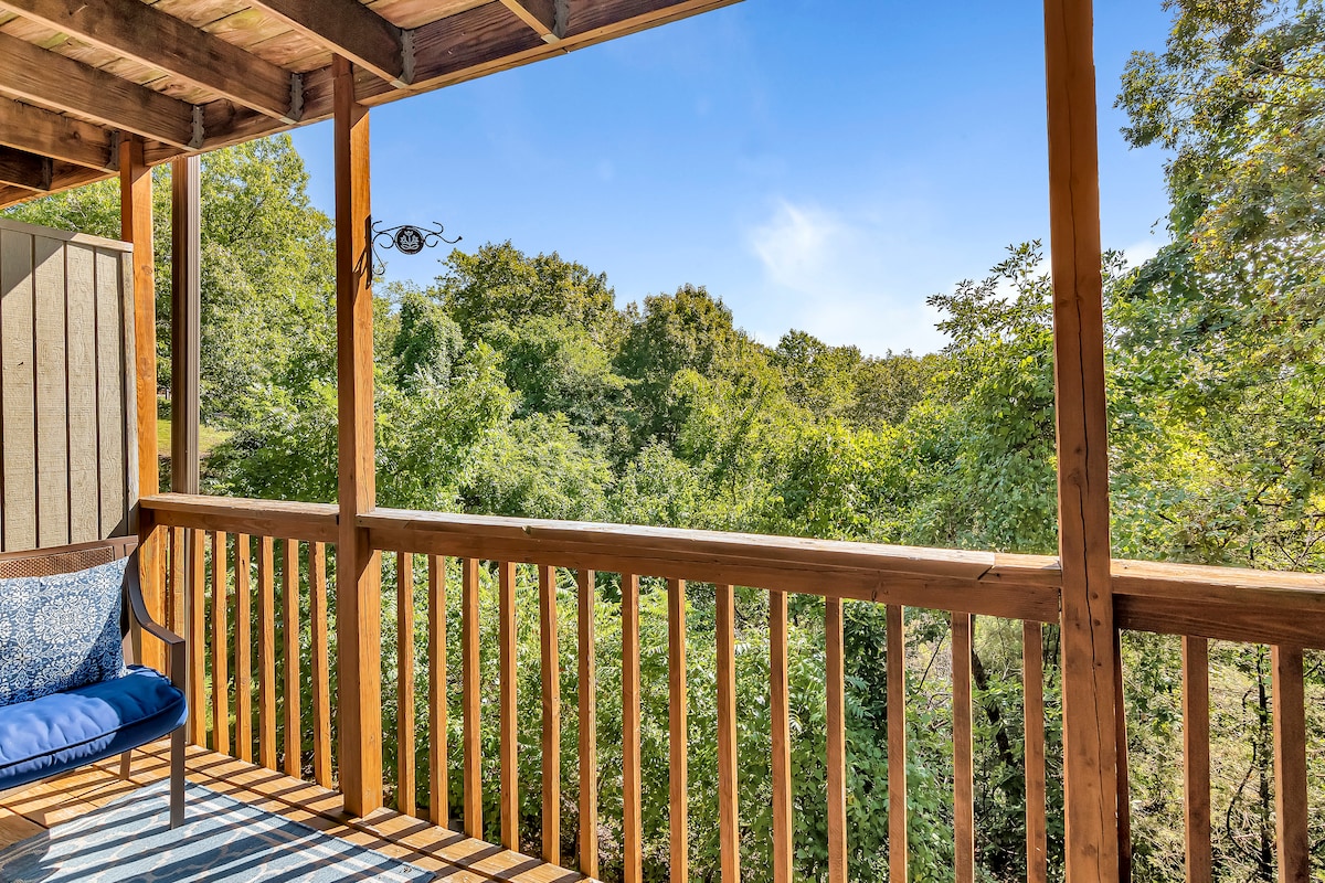 Bu Branson Tətil kondosu 300 hektardan çox meşəlik Ozark dağlarının ortasında sakit bir kompleksdə yerləşir. Ozark dağlarının gözəl işığı və gözəl mənzərəsi olan kondominiumdan zövq alacaqsınız! Bizim kraliça çarpayımızda rahat 4 düymlük köpük toppuz var ki, bu da sizə evdən uzaqda böyük bir gecə yuxusunun daha rahatlığını təmin edir. Göldə və ya Bransonda əyləncəli gündən sonra dincələ bilməyiniz üçün qonaq otağında çox rahat divan (kraliça ölçülü şpaler ilə) və böyük televizor var.