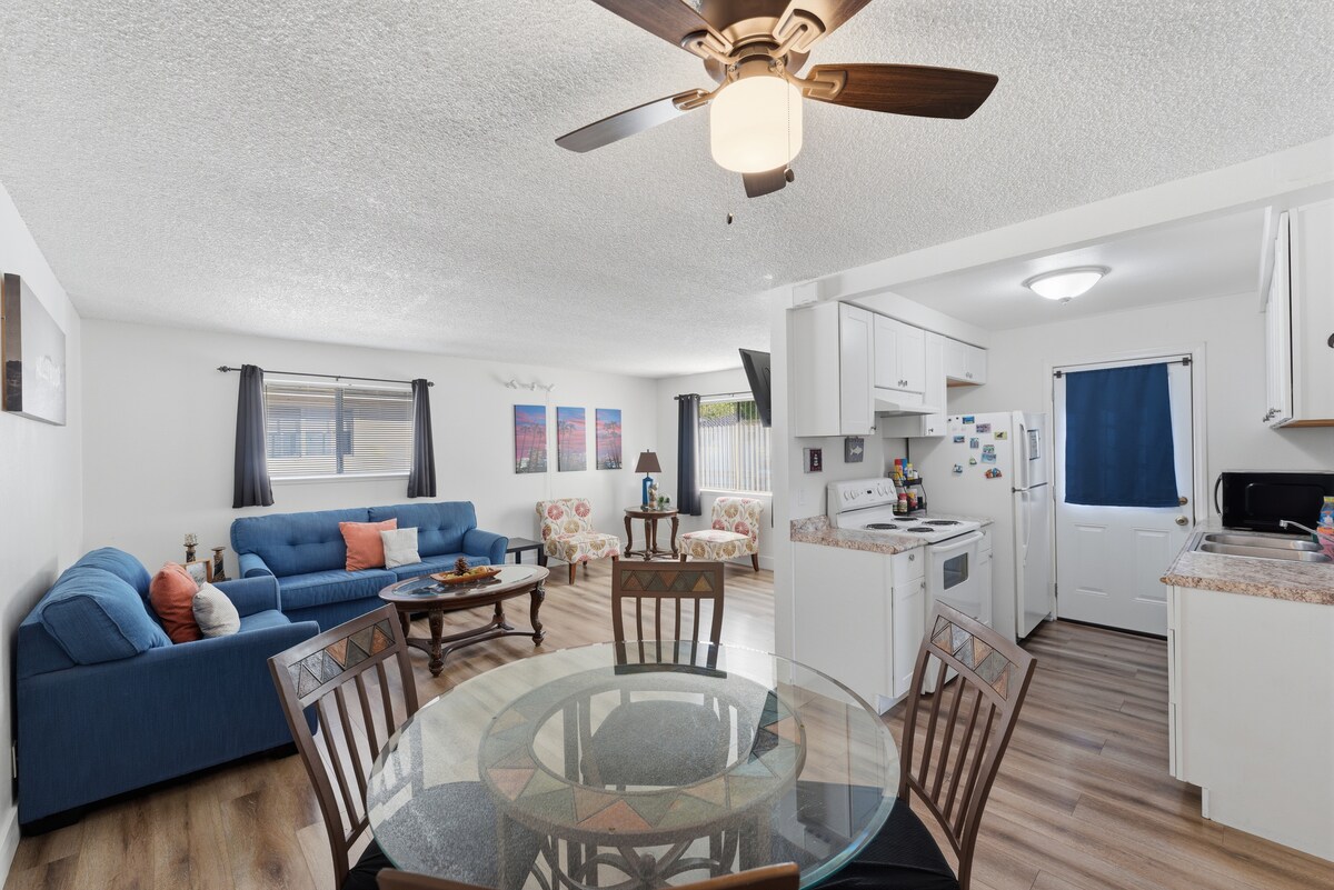 Relax in this cozy one-bedroom coastal retreat with ocean breezes, a Smart TV, a dedicated workspace, and a secluded private outdoor space. Polished beeswax-finished concrete earthing floors connect you to the ground for a calm, restorative stay. Cleaned following CDC guidelines with added UVC sanitizing and a Dyson air purifier. Set on a quiet street near the harbor, beaches, surfing, sunsets, whale watching, and local yoga. One parking space included.