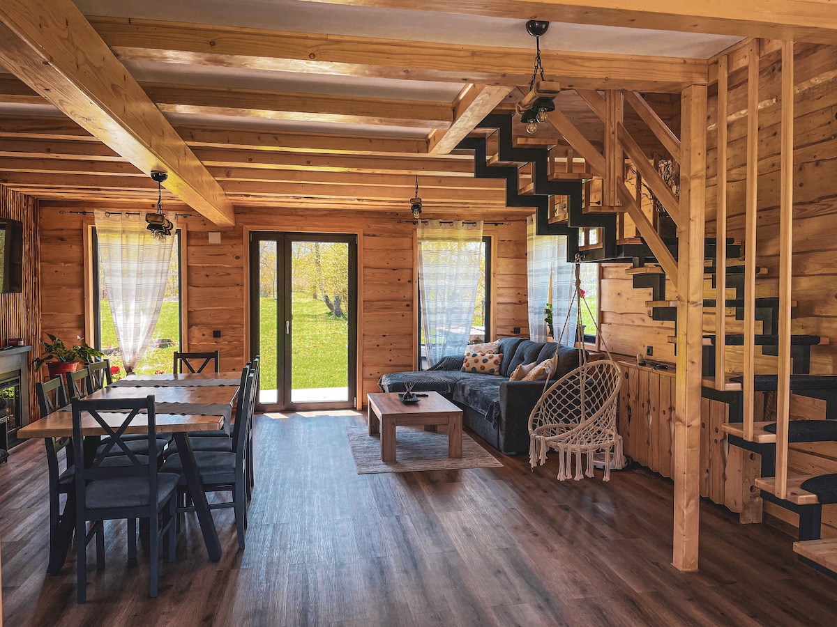 Göy parçamız sizə yalnız yaşayış yeri deyil, həm də tam unikal təcrübə təklif etmək üçün dizayn idi. Məkanımızda qonaqlamaq sizə ağac ev, ağac kabinəsinin dincliyi, dağ kabinəsinin mənzərəsi, meşənin yaxınlığı, iki Bernese dağ iti yoldaşımızın xoşbəxtliyi, isti su, istilik və elektrikli kammunal furqonun əmtəəsini və məkanı hiss etdirəcək. 2 evdən ibarət kompleksimizdə: Cənnət parçası və Xəyal Ədədi, siz şəbəkədə, lakin səki kənarında olacaqsınız