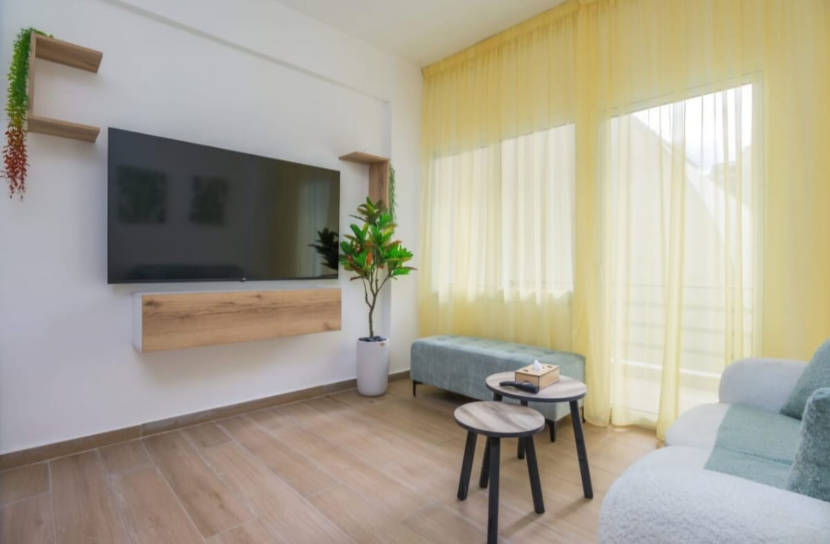 Ravda/Metndə bir yataq otaqlı mənzilimizdə əsl dincliyi yaşayın. Xüsusiyyətlərə 152 sm çarpayı olan yataq otağı, 43 düymlük Smart TV ilə rahat qonaq otağı, tam təchiz olunmuş açıq mətbəx, özəl açıq terras və vannalı hamam otağı daxildir. Hər otaqda 24 saat elektrik enerjisi, dərhal isti su, pulsuz Wi-Fi və soyutma/istilik üçün kondisionerin zövqünü yaşayın. Eksklüziv: 3 avtomobil üçün təhlükəsiz, şəxsi parkinq! Hər yerə asanlıqla çatmaq üçün mərkəzi mövqedə yerləşir, lakin sakit və dincdir.