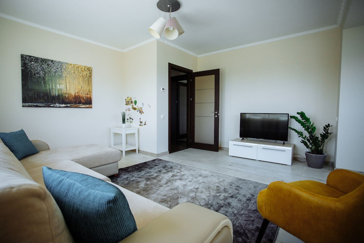Comfortable, family friendly 3 rooms apartment in Botanica with a beautiful luxury finishing. It is located in a small condo building with 19 units on a quiet street with ample parking possibilities. With only 3km distance to the city center it's very close to Chisinau's most popular bars and restaurants. A maxi taxi stop is right in front of the bulding and the next bus station is reached within 5 minutes walking. We provide high speed wireless internet and also access to an Netflix account.