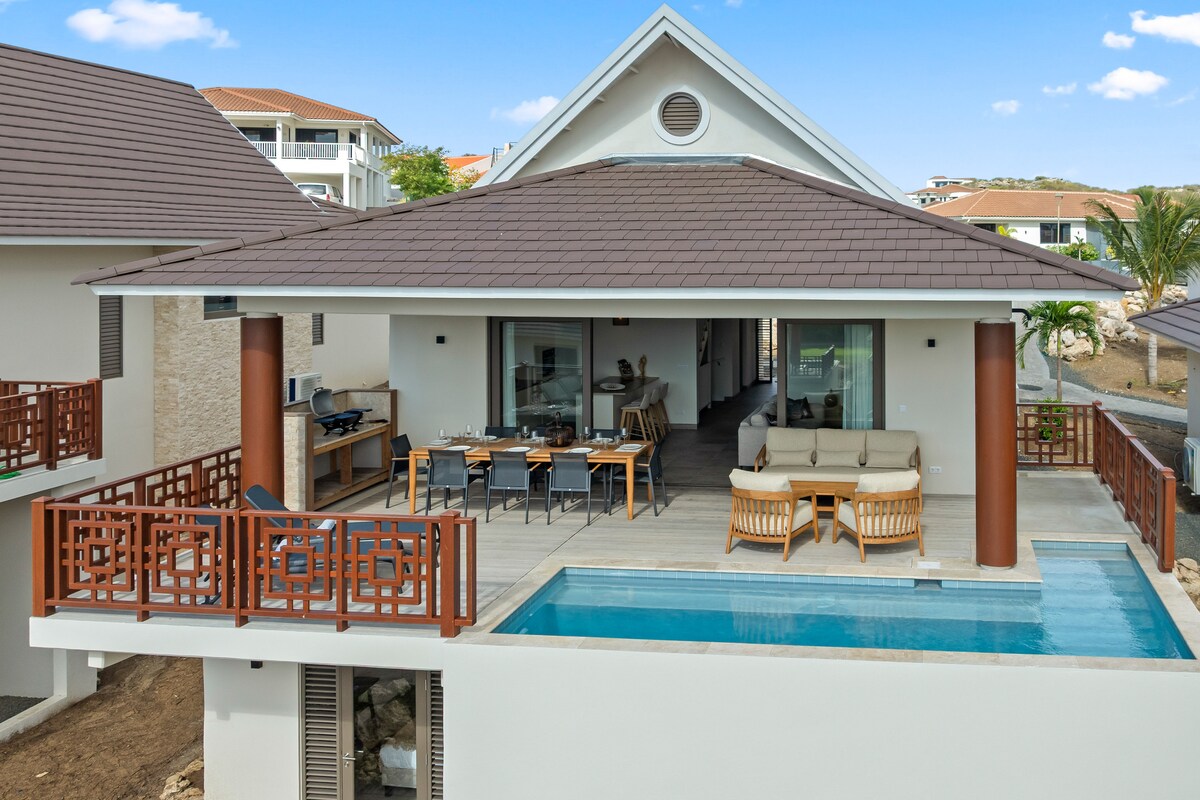 Escape to this stunning brand-new villa directly on an oceanfront cliff in Curacao's famous Blue Bay resort with panoramic views of the Caribbean Sea and an 18-hole golf course. With 3 luxury suites and your private infinity pool, this modern villa provides the pinnacle of comfort and style to enjoy a unique inside-outside luxury Caribbean experience. ✔ 3 Bedroom Suites ✔ Ocean Front ✔ Spectacular Views ✔ Private infinity pool ✔ BBQ ✔ Smart TV ✔ Fast Wi-Fi ✔ Full Kitchen See more below!