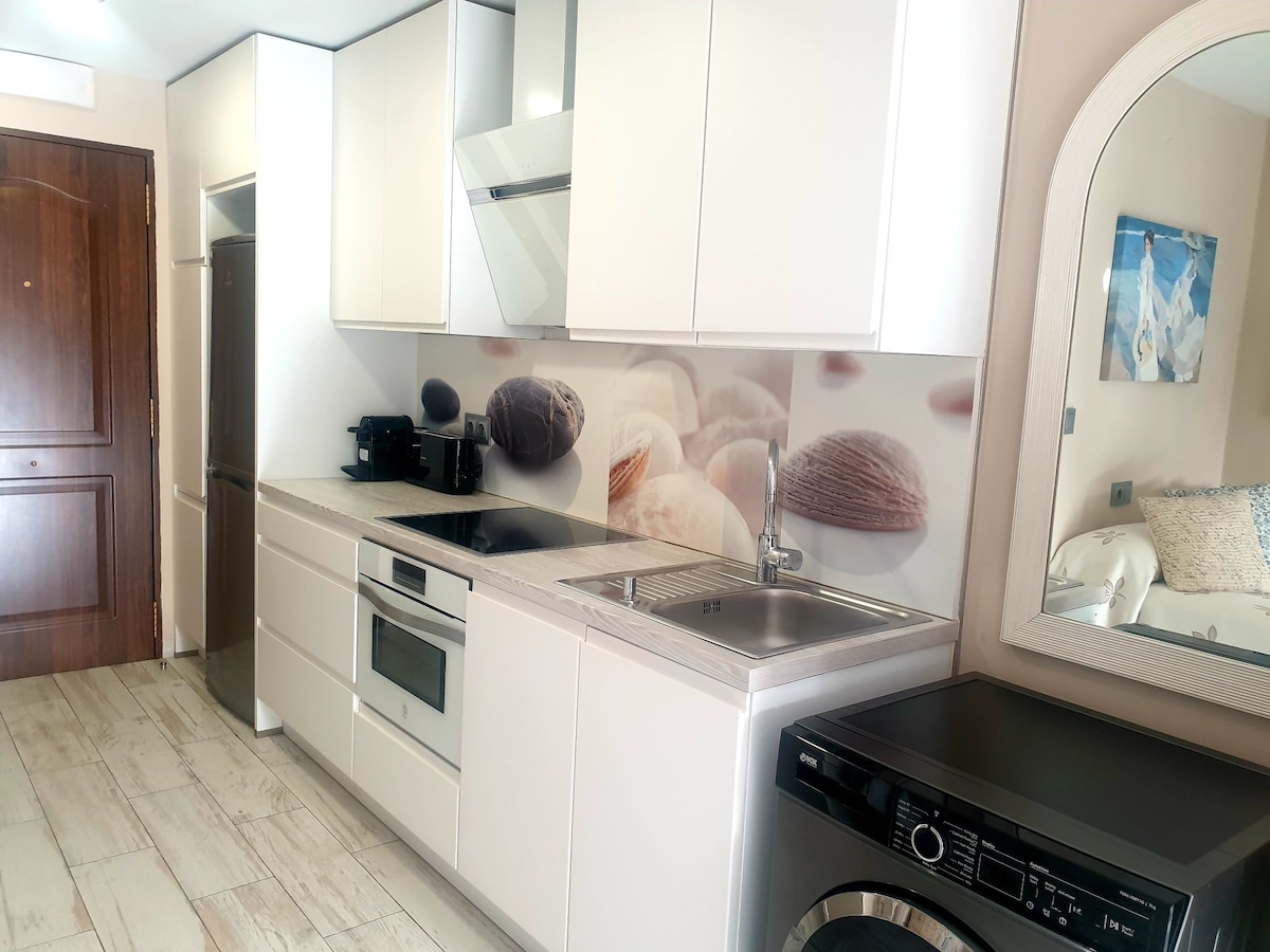 Avtomobil ilə Marbella və Fuengiroladan piyada 30 saniyə və 15 dəqiqə ərzində dənizə birbaşa çıxışı olan 12-ci mərtəbədə gözəl mənzil. Bura dəniz və dağ mənzərəli ikinəfərlik otaq, tam təchiz olunmuş mətbəx, yemək otağı və 2 nəfərlik böyük lüks divan çarpayısı (qatlanan) daxildir. Paltaryuyan maşın, duş və istilik sistemi olan hamam-tualet. Məhdud parkinq və hovuzu olan dəniz kənarında yerləşir.