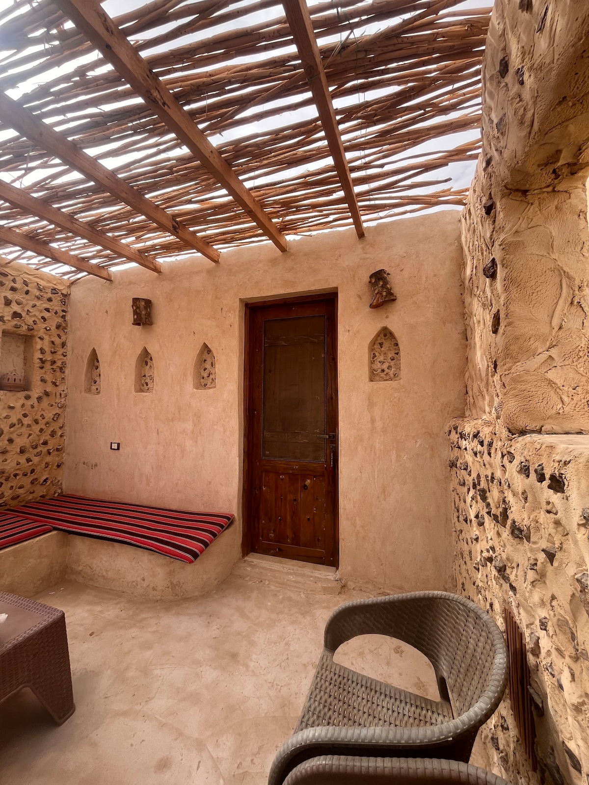 ailə və ya qrup süitası . Burada paylaşılan hamam otağı, mətbəx sahəsi və qonaq sahəsi olan Trible otaq + iki nəfərlik otaq var. maksimum qonaq sayı 5 nəfərdir. palma ağaclarının tullantılarından və yeraltı təbii isti sudan hazırlanmış eko-dostluq 🧺səbətləri ilə sivan üslubunda tikin.