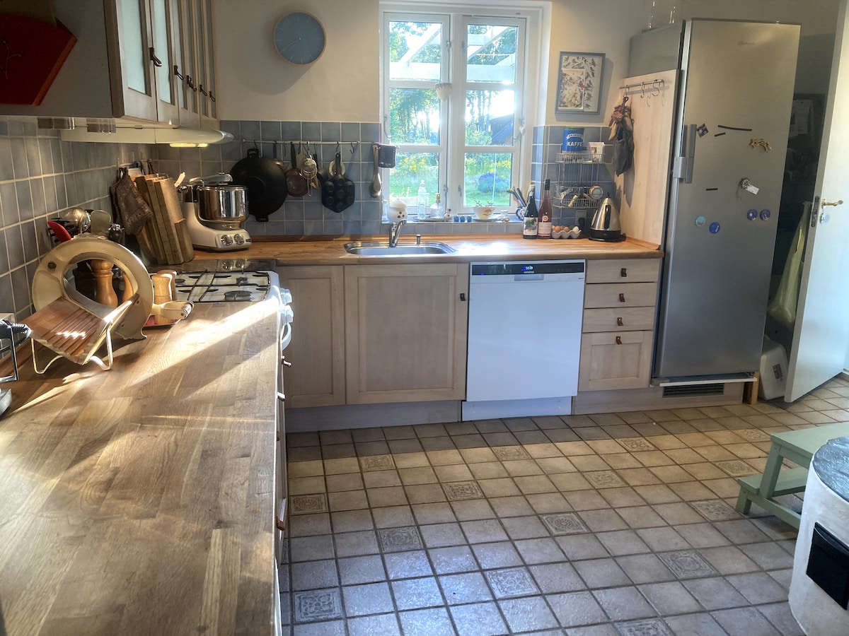 Skab nogle minder i denne unikke og familievenlige bolig. Skøn indrettet gæste anneks, 65 kvm. med masser af sjæl og charme. Privat terrasse , samt stor dejlig have med pavillon, hvor det er muligt at sove under åben himmel. I annekset er der en dobbeltseng 160 cm. Samt en alkove med 1 seng 140 cm. annekset er et stort rum med dejligt badeværelse med brus og vaskemaskine. Det er indrettet i hyggelig fransk landstil. Der er køkken med kombiovn,køleskab,kogeplader, elkedel.