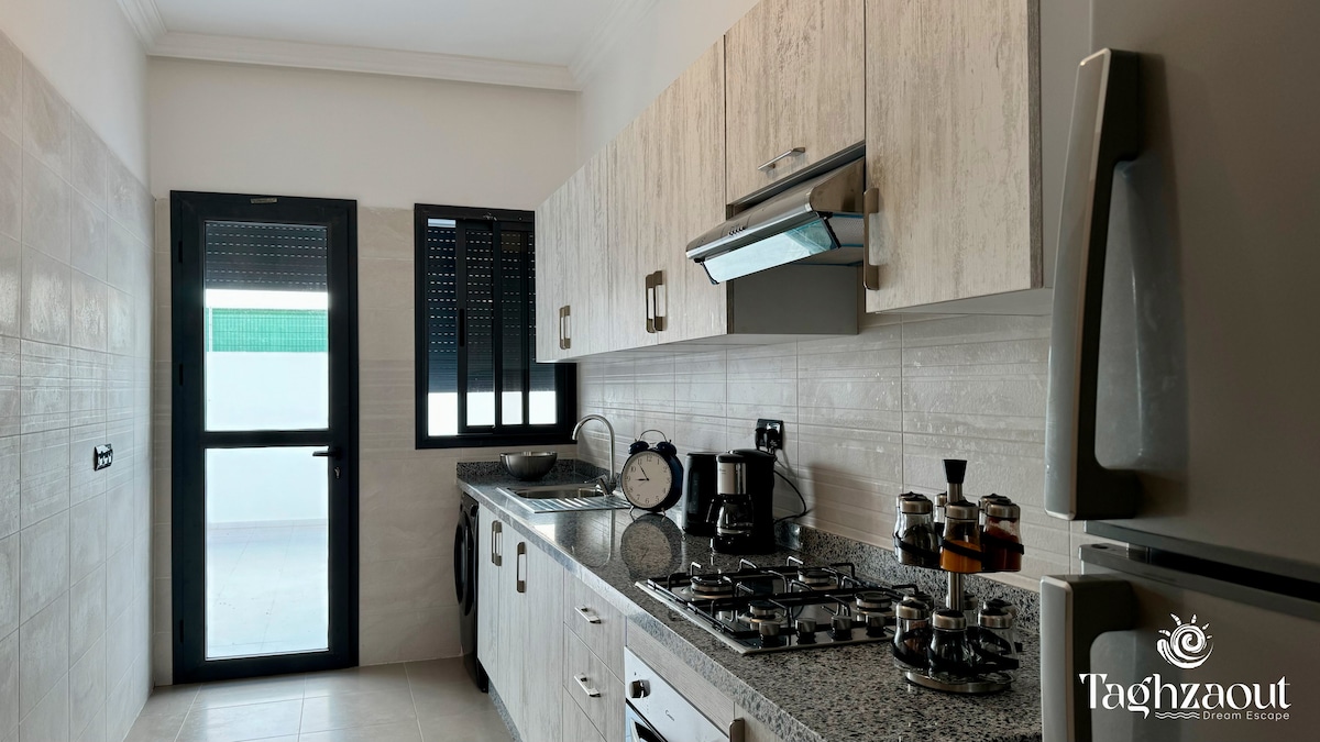 Tamamilə zövqlə təmir edilmiş mənzilimizdə qalaraq Skhiratda unikal təcrübəyə qərq olun. Rahat salondan, yaxşı təchiz olunmuş mətbəxdən və iki rahat yataq otağından zövq alın. Sxirat çimərliyindən 5 dəq məsafədə yerləşən mənzilimiz ailələr üçün mükəmməldir. İndi bron edin və Mərakeşin mərkəzində unudulmaz anlar yaşayın. PS: 1 aprel 2025-ci il tarixində quraşdırılmış 100mb Fiber optik internet.