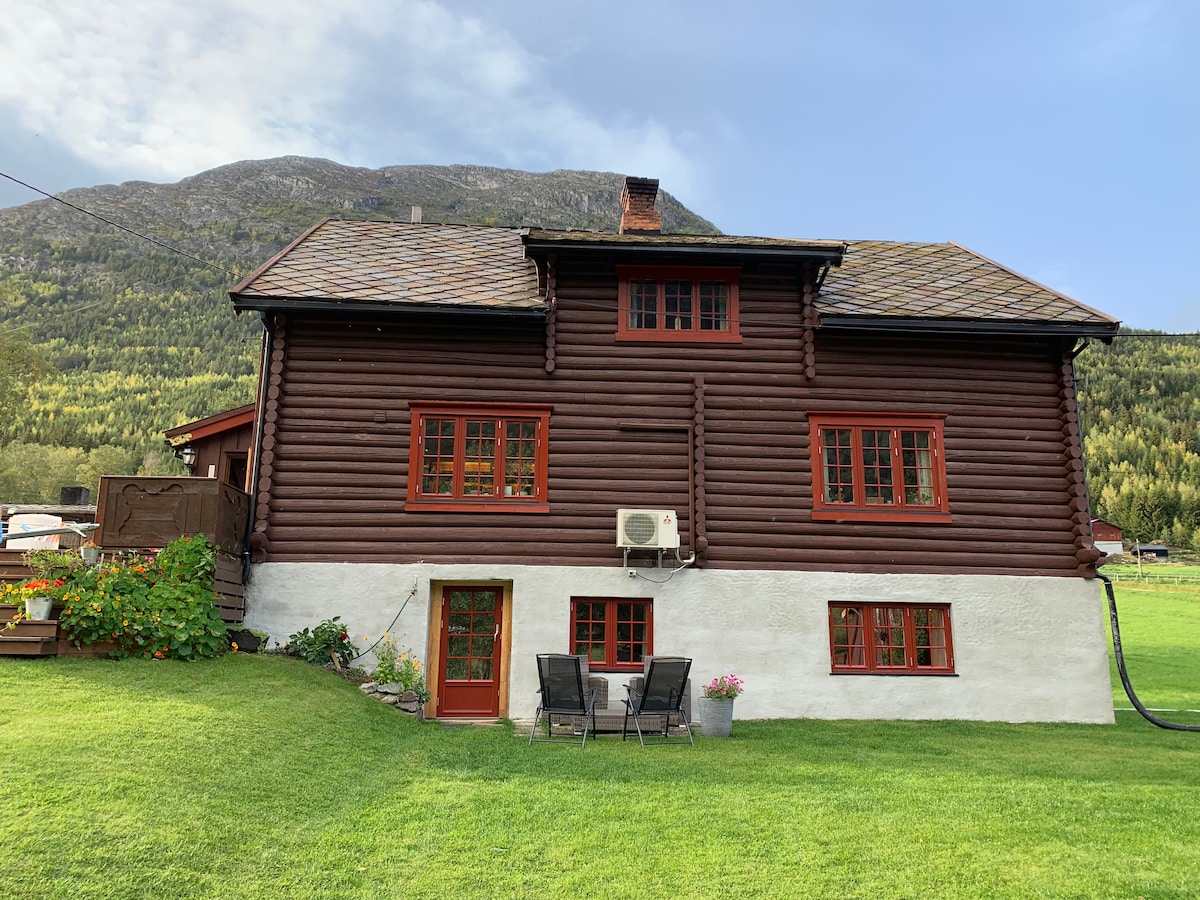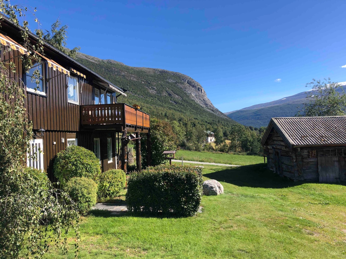 Sakit mühitdə yerləşən fermada işıqlı mənzil. Mənzil birinci mərtəbədə yerləşir və hər kəs üçün asanlıqla əlçatan olmalıdır. Mənzildə buxarı və bütün qab-qacaqları olan mətbəx var. Yataq otağında ikiyataqlı çarpayı var və lazım olduqda yataqlar əlavə edilə bilər. Mənzil üç milli parkın arasında yerləşir; Yotunheymen, Breheymen və Reynheymen və yay və qışda gəzintilər üçün əla başlanğıc nöqtəsidir. Mərkəzə qısa yol. Parklama üçün geniş yer var.