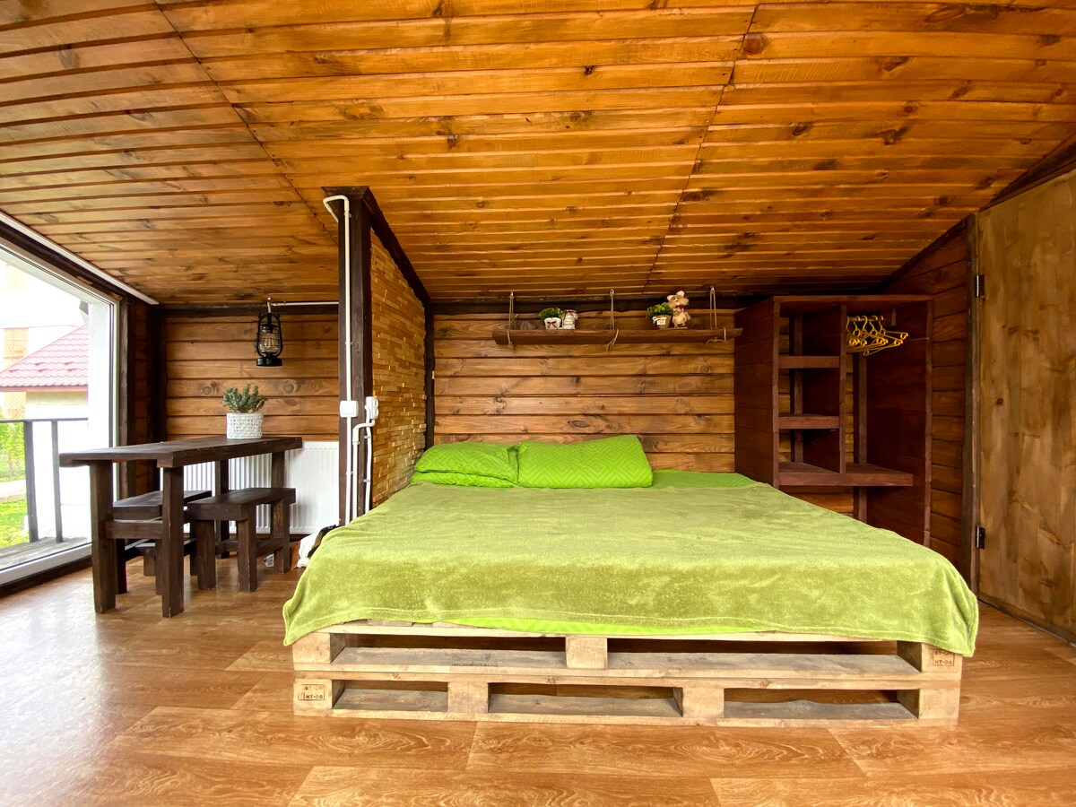 Bu romantik məkanda dincəlmək sizin üçün unudulmaz bir təcrübə olacaq. Ev açar-təslim əsasla icarəyə verilir, ətrafda gözəl mənzərələr var. Səs-küylü qonşular olmadan, bu, dağlar arasında yerləşən, Slavske dəmir yolu stansiyasına avtomobil və ya qatarla çatmaq mümkün olan bir evdir və biz stansiyadan transfer təşkil etməyə kömək edəcəyik. Həmçinin Karpat çayları, odunla qızdırılan hamam və ya cakuzi vannası (əlavə ödənişlə) ilə vannanı sifariş edə bilərsiniz. Bu, dağlarda unudulmaz tətiliniz olacaq.