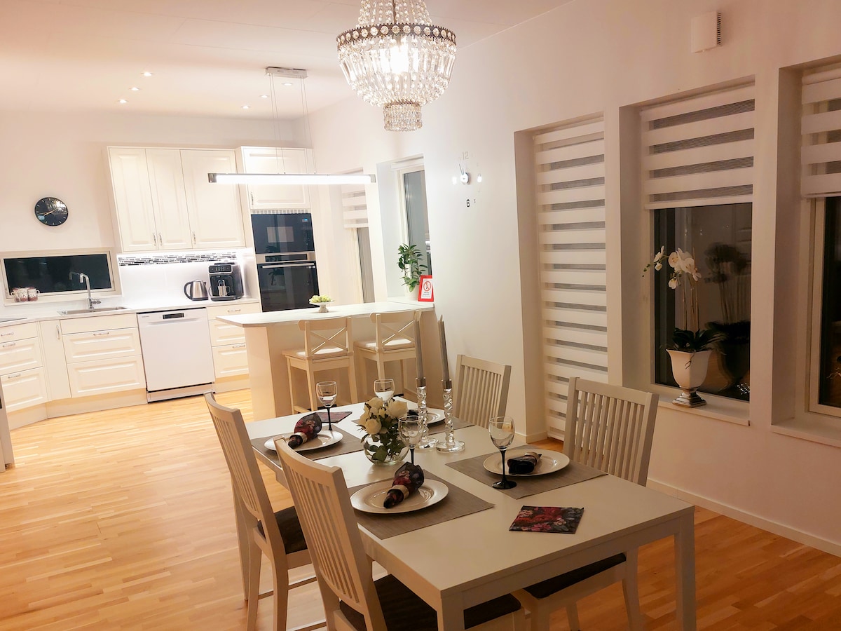 Our studio, built in 2016 is situated close to the city but still in the countryside. There are three beds - one single bed at the loft and a sofa bed (queen size) in the combined kitchen and living room. If there are requests, we can also arrange space for a fourth person on a mattress at the loft. Large bathroom with sauna. 28 sqm with bathroom and loft. Pool and garden are shared with the host family. A newly built outdoor gym is 100 meters from the studio.