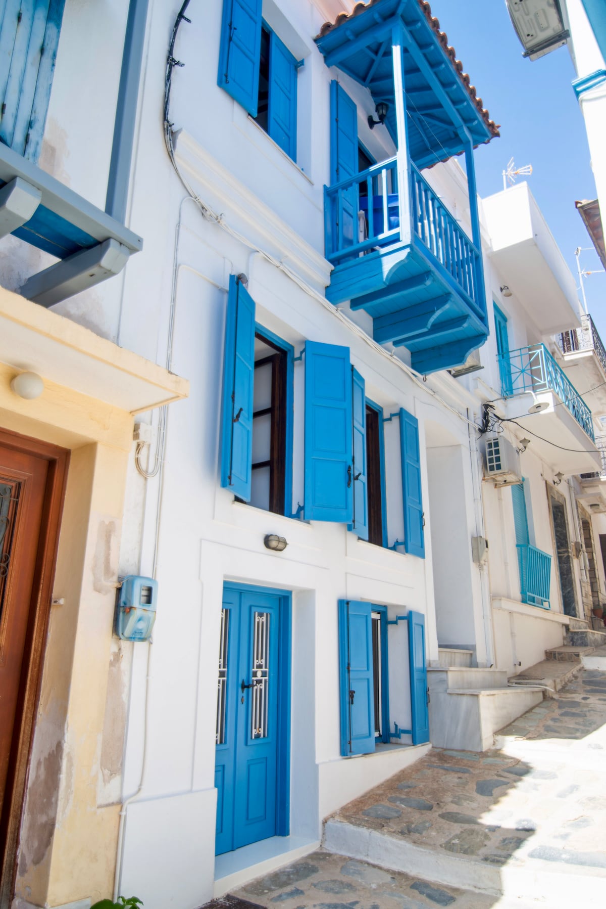 Bu yaxınlarda geniş təmir edilmiş, xarakterik, şəhər evi Skopelos İçəri Şəhərdə mükəmməl bir yerdə yerləşir. Hər yerdən qısa bir gəzinti, lakin Liman və Taun üzərində 340 dərəcə mənzərəsi olan heyrətamiz dam terrasında dinclik və sakitlikdən zövq ala bilmək üçün dağ yamacından kifayət qədər uzaq məsafədə yerləşir. Əsas yaşayış sahəsi balkonundan dəniz mənzərələrinə malikdir. 3 yataq otağı xarakterikdir və əmlakın tarixinə uyğundur. Bir az incidir və şəhəri və adanı kəşf etmək üçün mükəmməl baza!