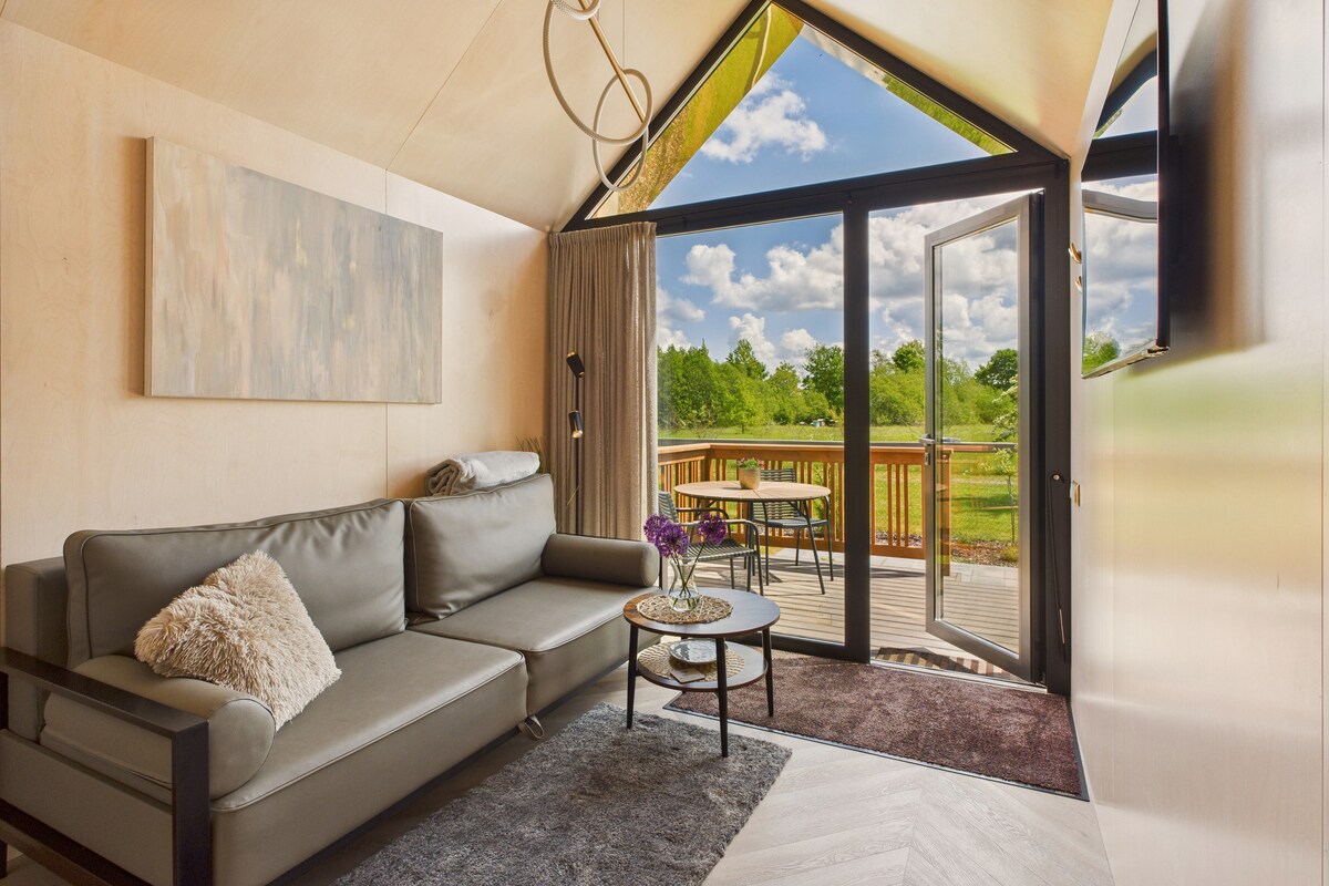 This is a cottage overlooking the meadow and the nearby forest. The cottage has a small terrace, where you can enjoy your time and relax. There is a small kitchen area and a bathroom with a shower. The cottage is located in country estate Lūķi, 2km to the beach. The estate has a picturesque landscape with large oaks, a tea garden, an authentic sauna, and garden shed. There is also a salon with an exhibition of handicrafts.