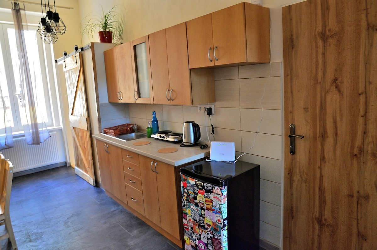 The flat is conveniently located just 2 minutes (230 m) from the main bus station and also to the Becherovka Museum (city centre). The 1st-floor, hight ceiling apartment has a simple, artsy atmosphere and it is located in a 140 year -old, neo-classical building. This is not a high end (luxury) type of accomodation! It consists of 2 completely separate rooms (bedroom and living room), kitchen, bathroom, hallway and small balcony. A bohemian flat loved by our artist guests.