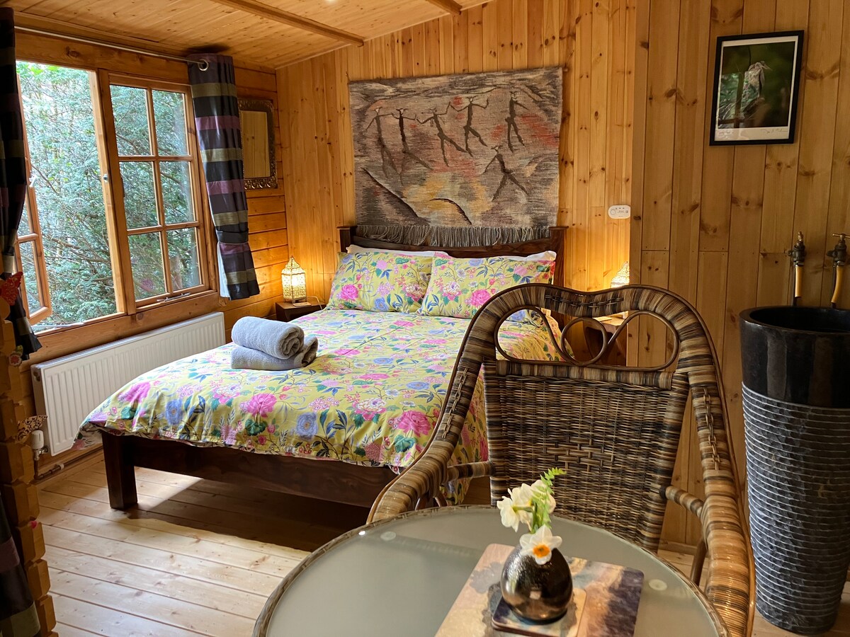 Treetops kabinəmiz heyrətamiz açıq hava məkanı və alov çuxuru, ağaclardan görünən mənzərələr və ətrafdakı təbiətin səsləri ilə dolu olan meşə otağıdır. Treetops 4 hektarlıq meşəlik ərazidə qurulmuş üç kabinədən biridir. Fərdi şəkildə dizayn edilmiş və mərkəzdə qızdırılan Treetopsda ikinəfərlik çarpayı, duş otağı, yemək/oturma sahəsi var. Sevimli jurnal yandırıcısı üçün jurnallar satırıq. Kiçik soyuducu, çaydan, toster, fen və televizor var. Və eyvanda qaz halqası olan qaz anbarı.