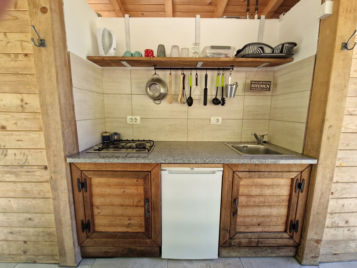 Evdə taxta damın sığınacağının altında rahat gecə yuxusu üçün yataq dəsti və yaddaş köpüyü olan çadır tapa bilərsiniz. Çadıra çıxmadan bir qədər fərqli şəkildə düşərgə təcrübəsini yaşayın. Çadırda 2 böyük yerləşdirilir. Bu qonaqlama yerində ev heyvanlarına icazə verilmir.