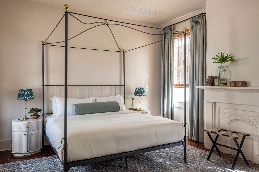 A sunny courtyard-facing king room located in the Muses Luna Inn: A newly renovated historic mansion in the famous Garden District of New Orleans. Tucked beneath the gigantic oak trees of Prytania Street, The Muses' Luna is a striking Italianate double-gallery mansion dating back to the 1800s. Lovingly restored from the studs by local preservationists and designers to create a spacious and luxurious space to experience the best of New Orleans.