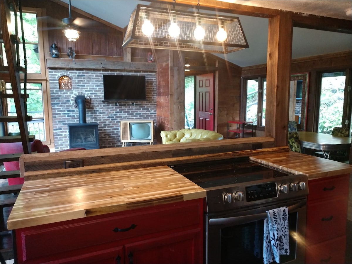 Mohican & Snow Trails-dan bir neçə dəqiqəlik məsafədə yerləşən bu dəbli, yeniləmə evi xəyalınızdakı tətildir. Möhtəşəm yığıncaq məkanları olan 3 yataq otağı və 1 vanna otağı bu evi açıq hava həvəskarlarının istirahət etməsi və sərgüzəştlər arasında əlaqə qurması üçün mükəmməl edir. Sevimli xatirələrinizi görmək üçün InstaCameramızdan istifadə edin. Balkondan mənzərədən zövq aldığınız üçün valehedici günəş vannaları qəbul edin. Gərgin həyatınızdan imtina edin və Stay@ Mohican-da əlaqə qurun! Ev sahibi zirzəmi mənzilini tutur