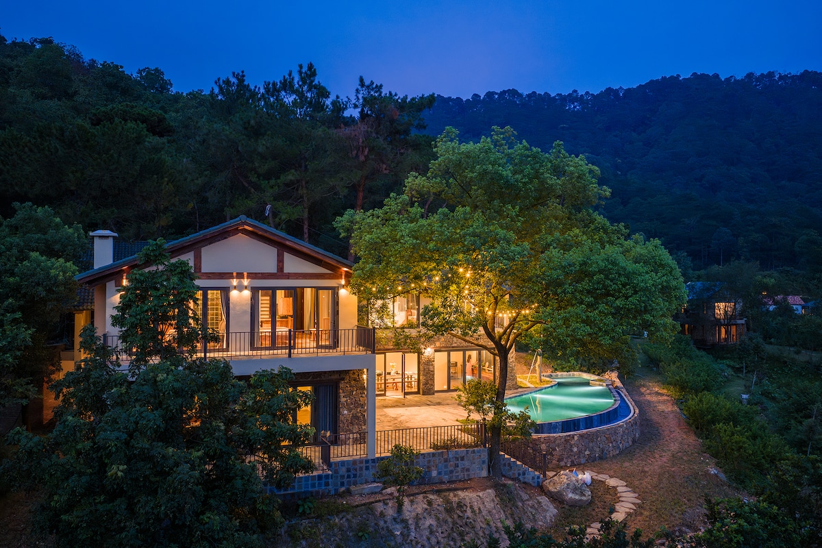 🌲 50 phút lái xe từ trung tâm Hà Nội, bạn dễ dàng tận hưởng không gian nghỉ dưỡng sang trọng, xây dựng theo phong cách kiến trúc mở hiện đại, hòa quyện hoàn hảo với thiên nhiên. 🌲Villa được bao quanh bởi rừng thông 40 năm tuổi. 🌲Thiết kế mở với hệ thống cửa kính lớn, giúp ánh sáng tự nhiên tràn ngập không gian và đưa cảnh sắc thiên nhiên vào từng góc nhỏ. Mùa đông có hệ thống sưởi và bể bơi nước ấm. 🌲Villa có 4 phòng ngủ, mỗi phòng đều có ban công rộng rãi, view rừng thông tự nhiên.