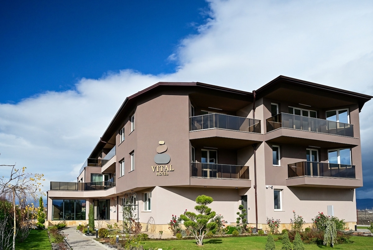 Vital Hotel, Bozhurishte: Your quiet sanctuary near Sofia. Ideal for business & leisure, we offer modern rooms with a focus on comfort and detail. Amenities: - Comfortable beds for restful sleep - AC & Climate control - Flat-screen TV - High-speed Wi-Fi Enjoy personalized service, impeccable cleanliness, and a private check-in process. Located just minutes from the capital, we ensure a seamless stay where you feel right at home. Welcome to Bozhurishte!