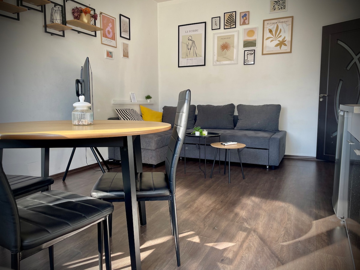 Welcome to my boutique attic studio at the foot of Vitosha. Bright, minimalist and peaceful space with beautiful mountain and city views. Located in a quiet, safe area—perfect for evening walks and relaxing away from the center. The bed features a Magniflex mattress and pillows for excellent rest. The studio has a fully equipped kitchen, fast Wi-Fi and a cozy work/dining area. Clean, calm and with easy access to both the mountain and the city.